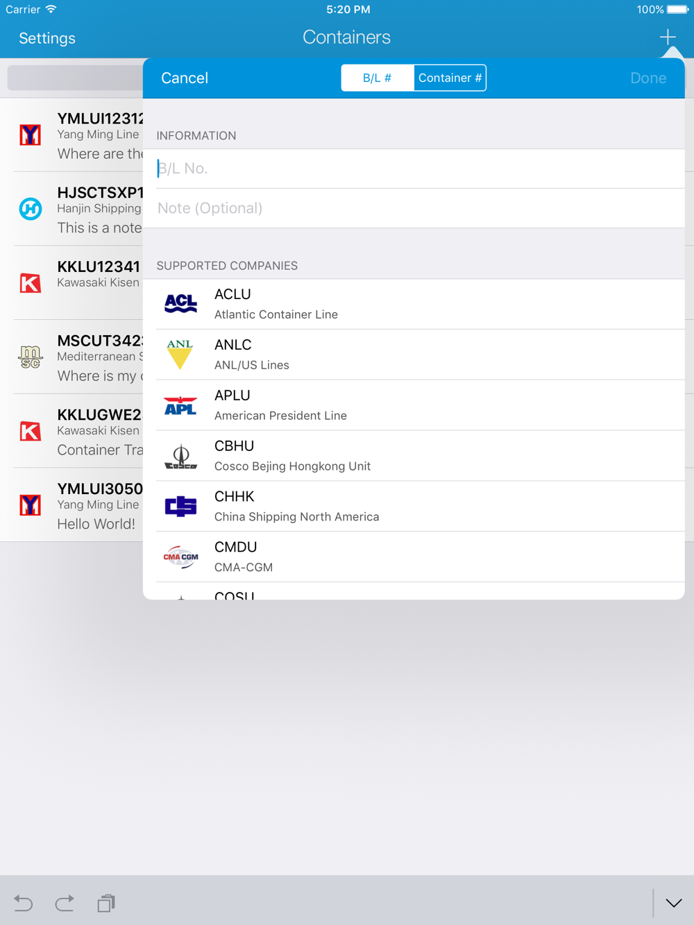You can easily track & trace containers and manage various BL numbers and Container numbers for FREE!!. Currently supports 27 shipping companies and will add more and more.