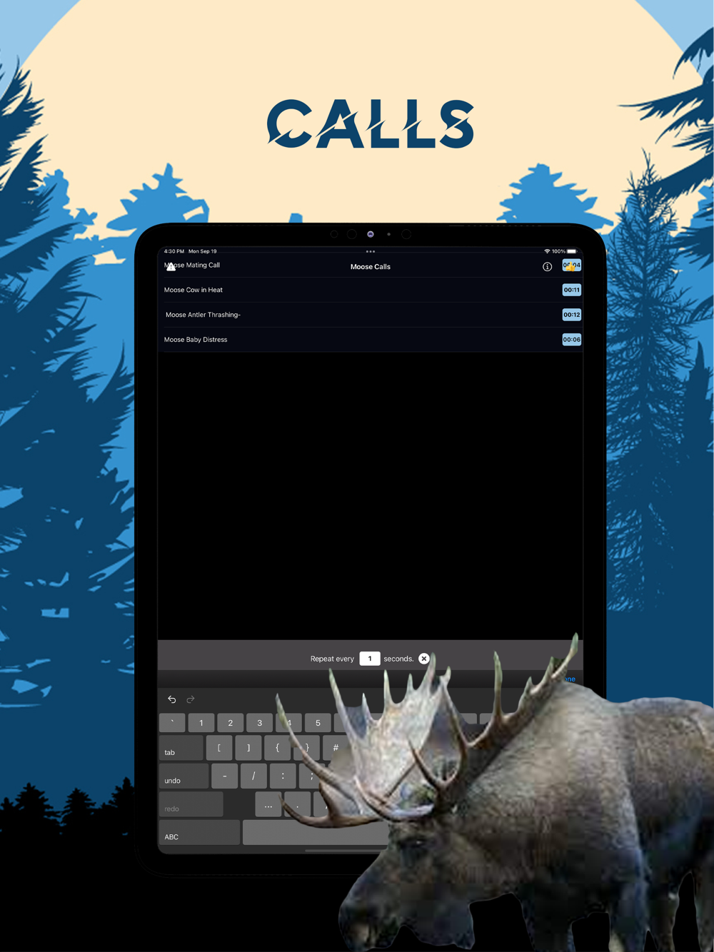 You can play the sounds individually and set them to repeat after the amount of seconds that you desire. Or you can manually tap different sounds create a deadly combination of calls that will work perfectly for the moose you are hunting.