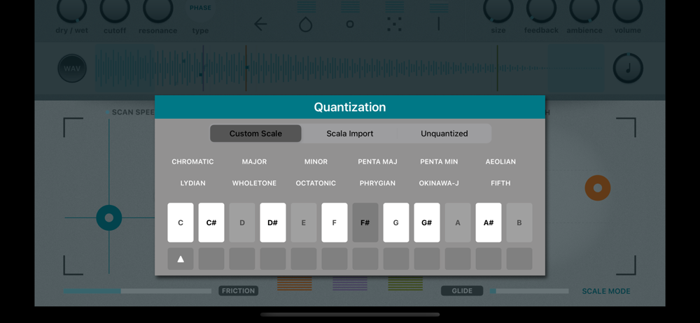- Custom scales, unquantised mode and even Scala-import for microtonal experiments