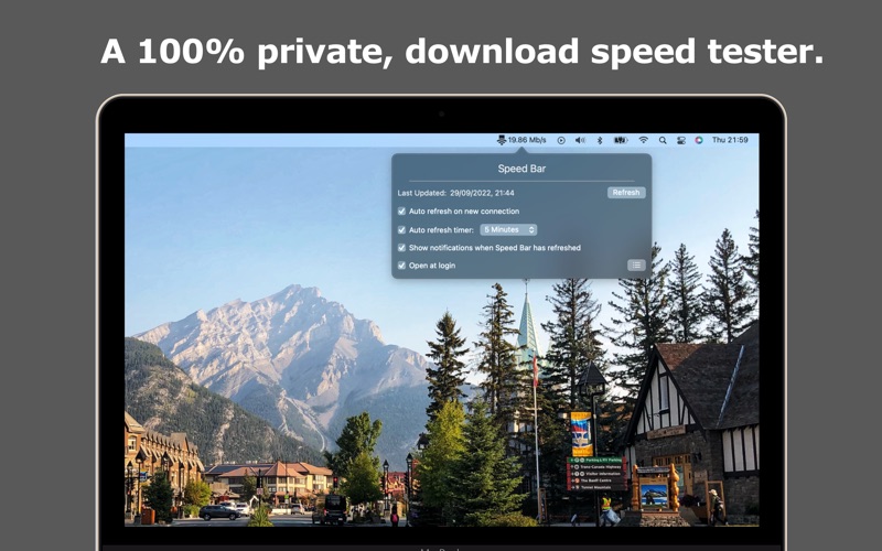 See you current download speed straight from your status bar, automatically updating between connection changes and at customisable time intervals...perfect for location hopping and remote workers alike.