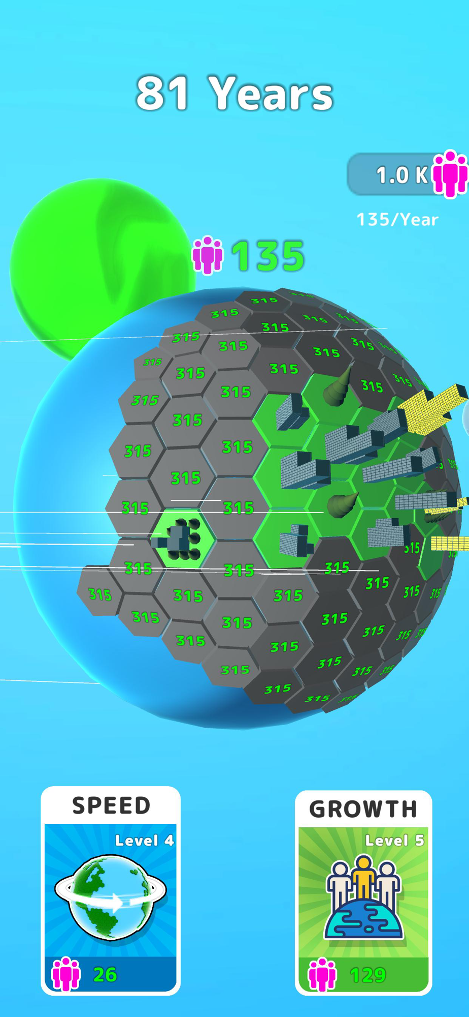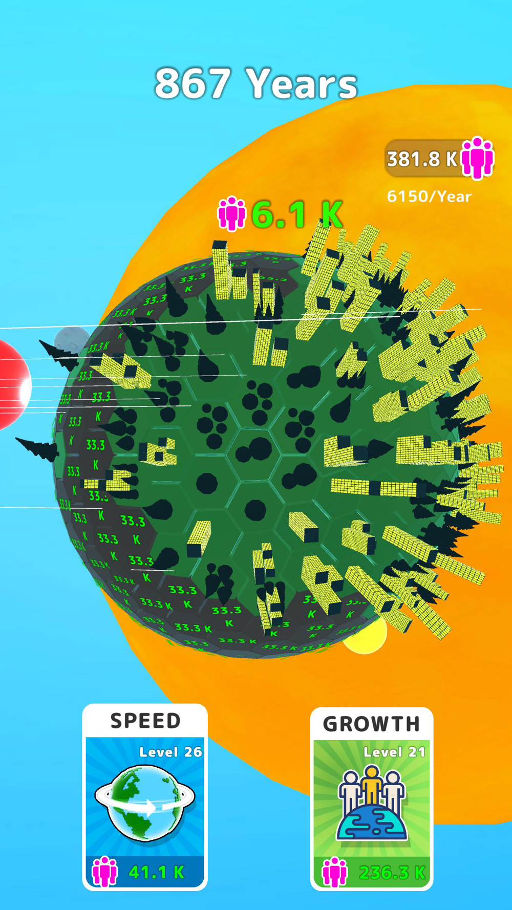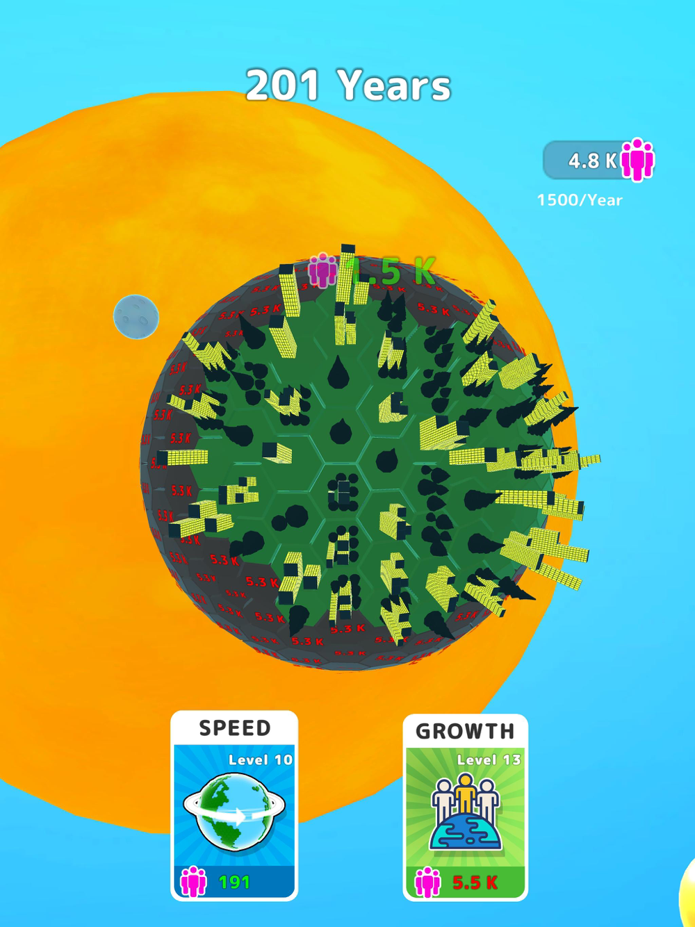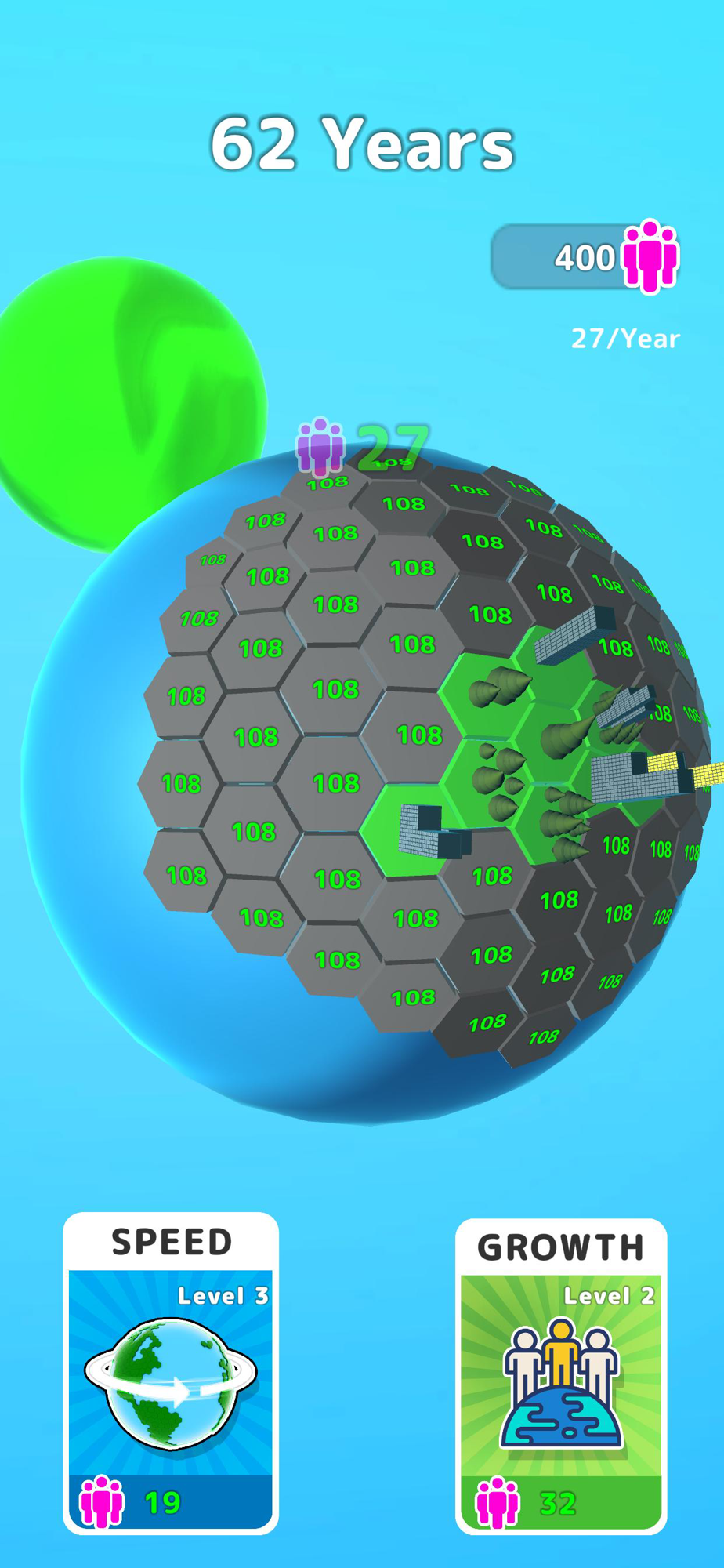 Increasing the world's population is in your hands! All you have to do is increase the planet's rotation and unlock new lands!