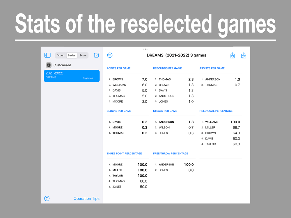 + Stats are generated per game; multiple-game stats will not be generated.