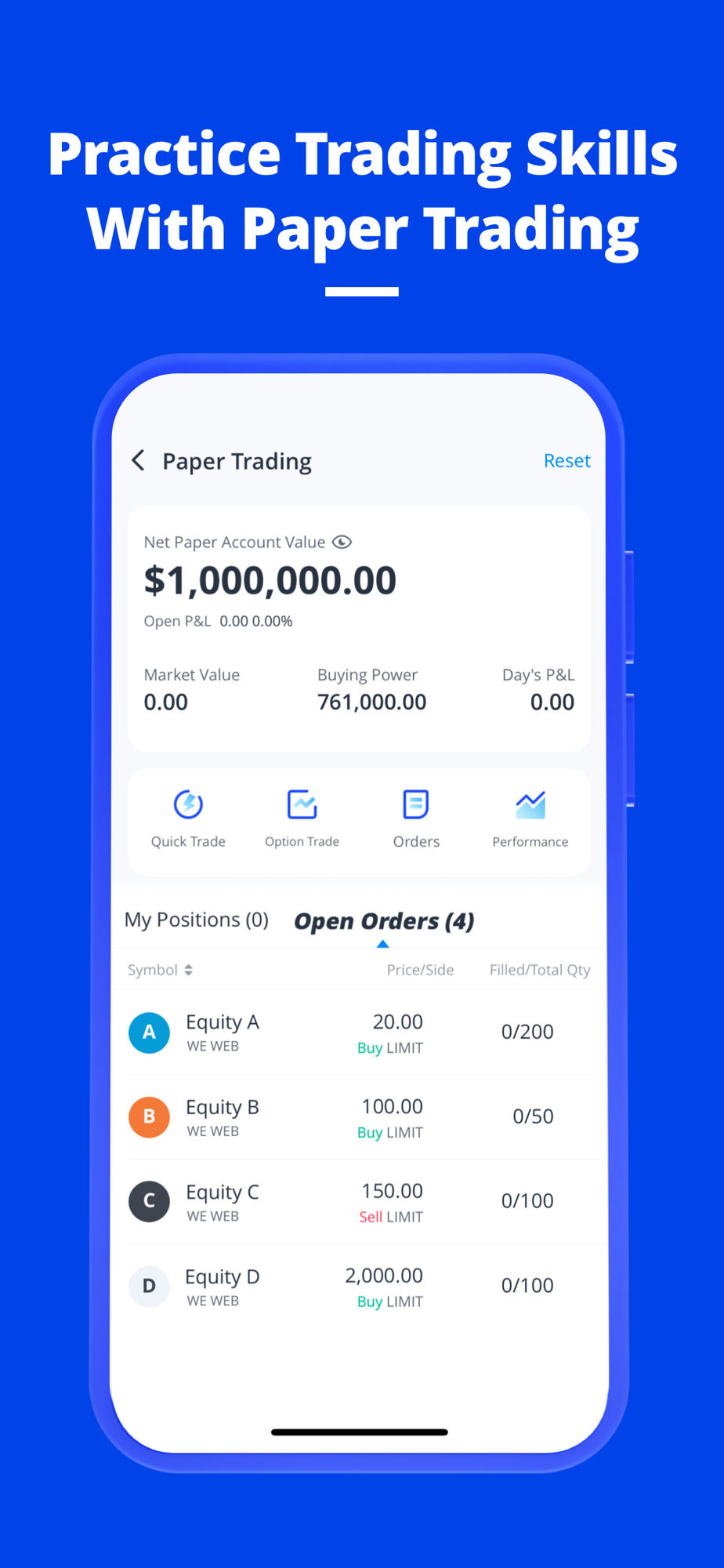 - Practice & explore trading methods without spending real money with Paper Trading.