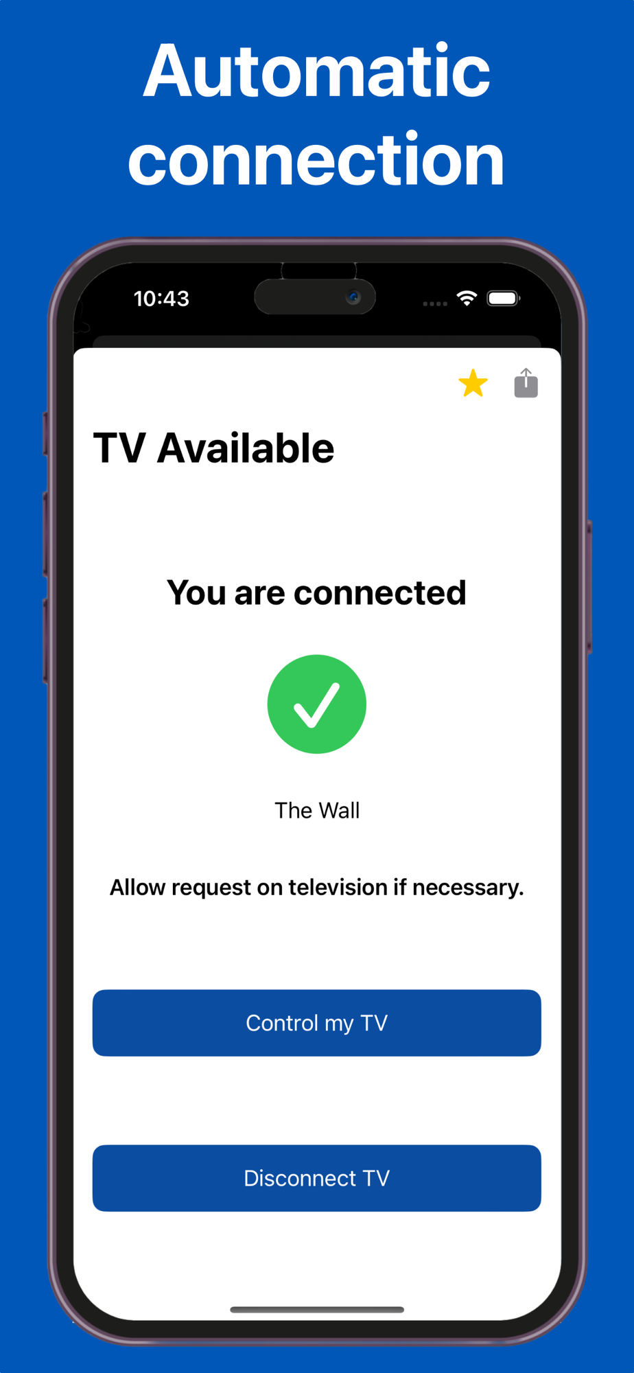 - Automatic connection to your TV