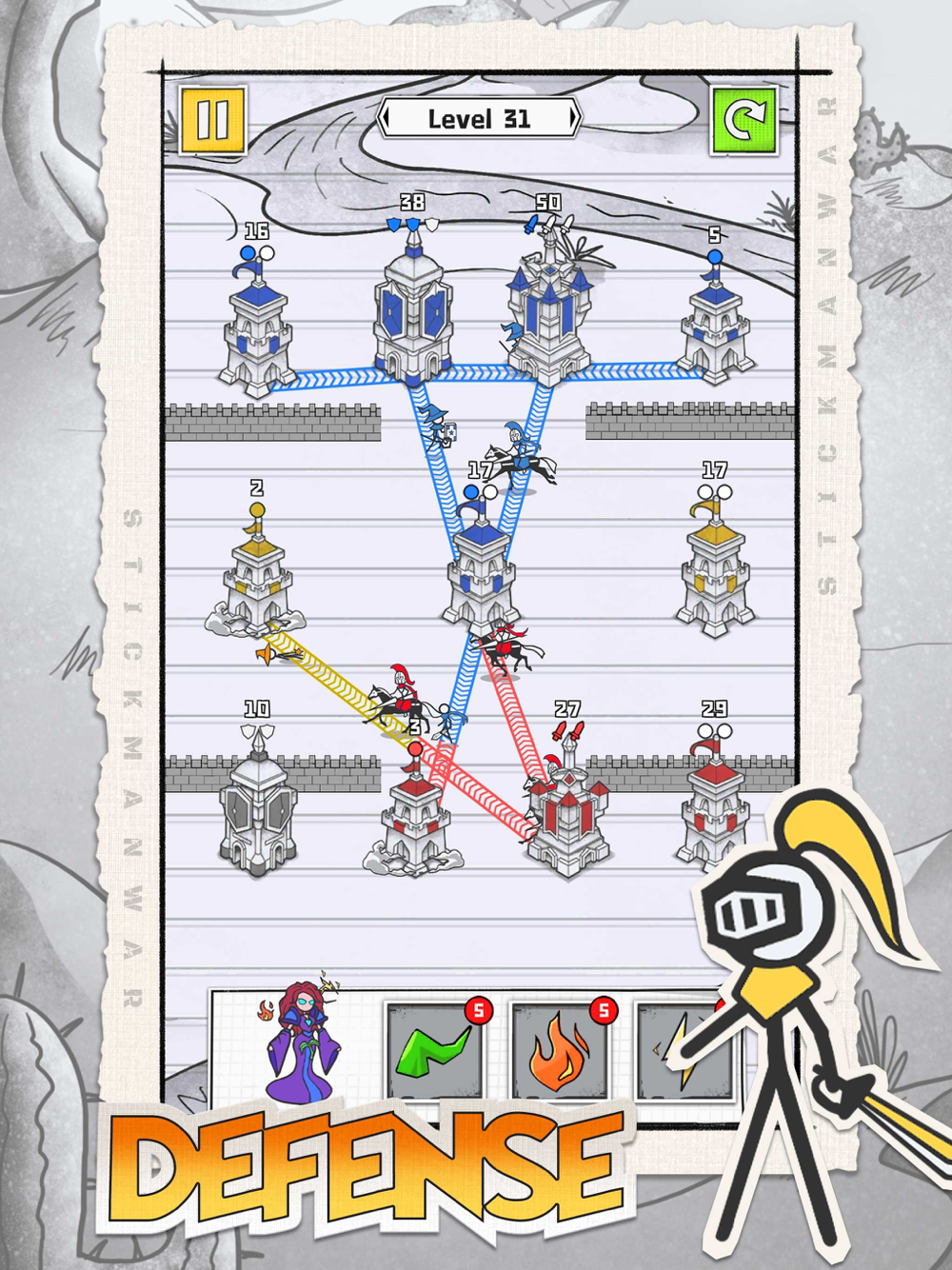 Use your ingenuity to specify the correct strategic plan and lead the stickman to defend their own castle while occupying the castles of other colors. You win when all the castles are occupied by blue stickman.