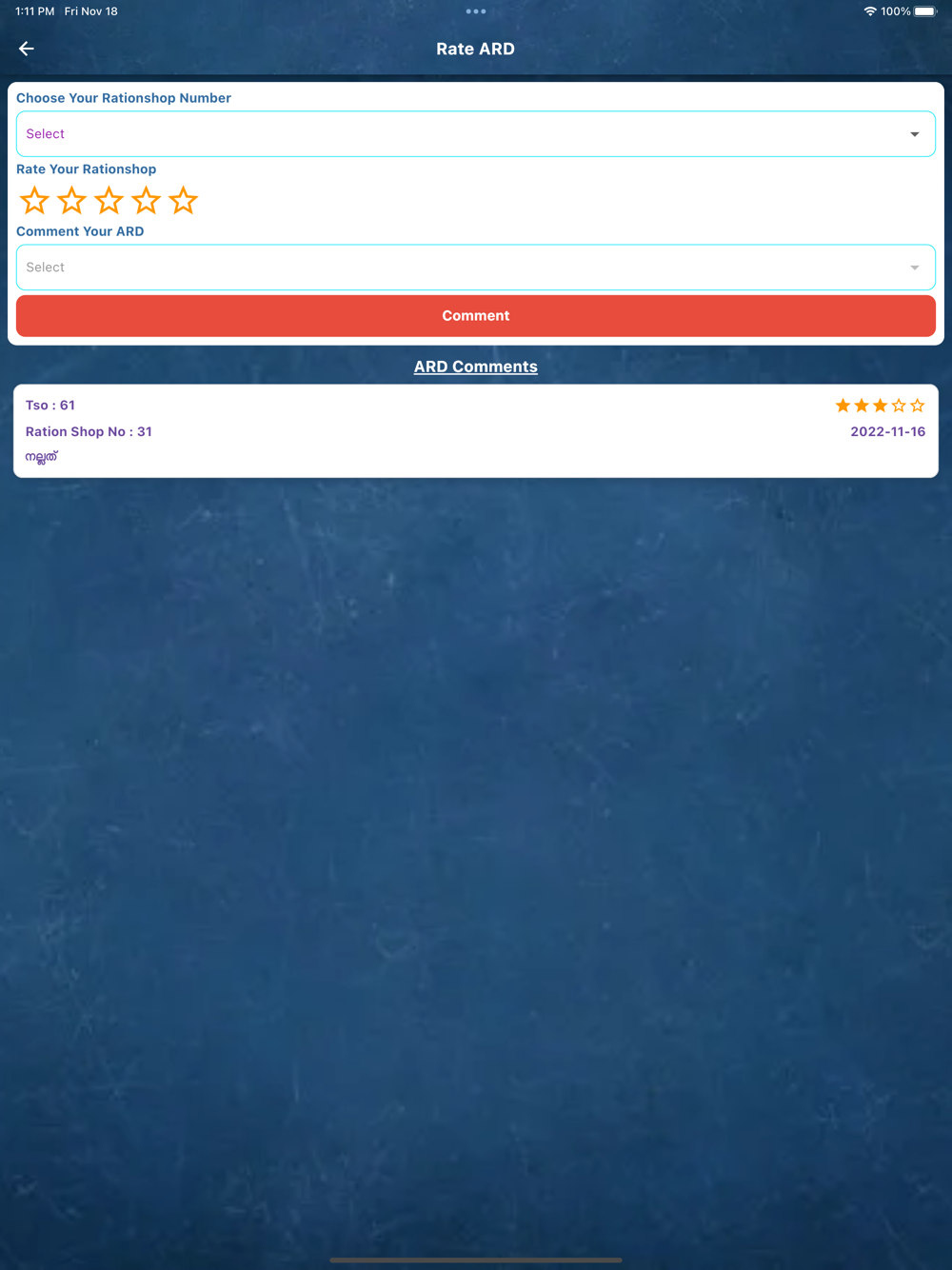 - Secure access to Ration Card information after successful login process using OTP generated in the