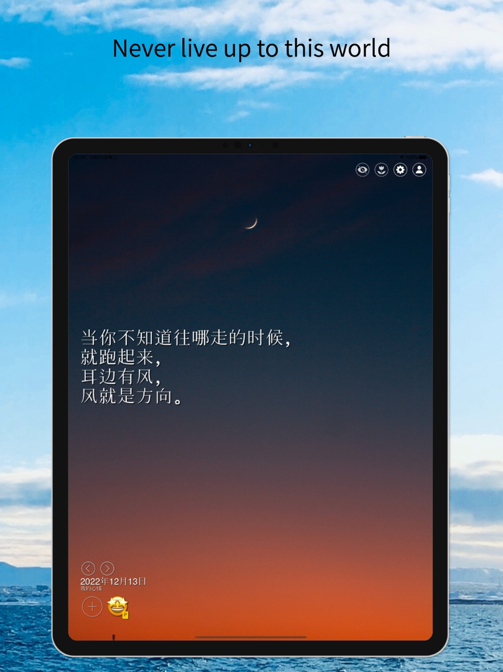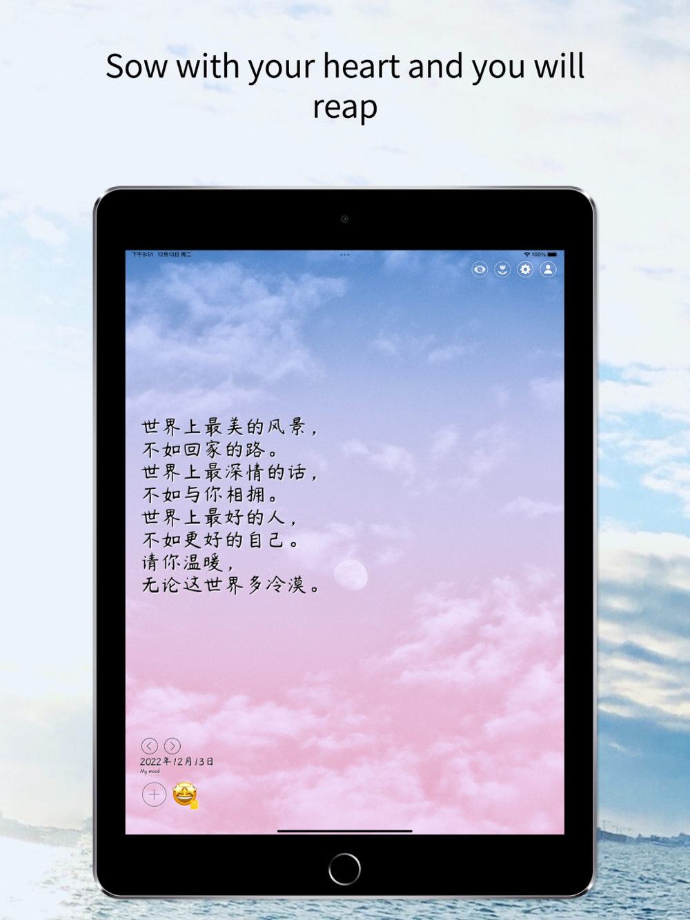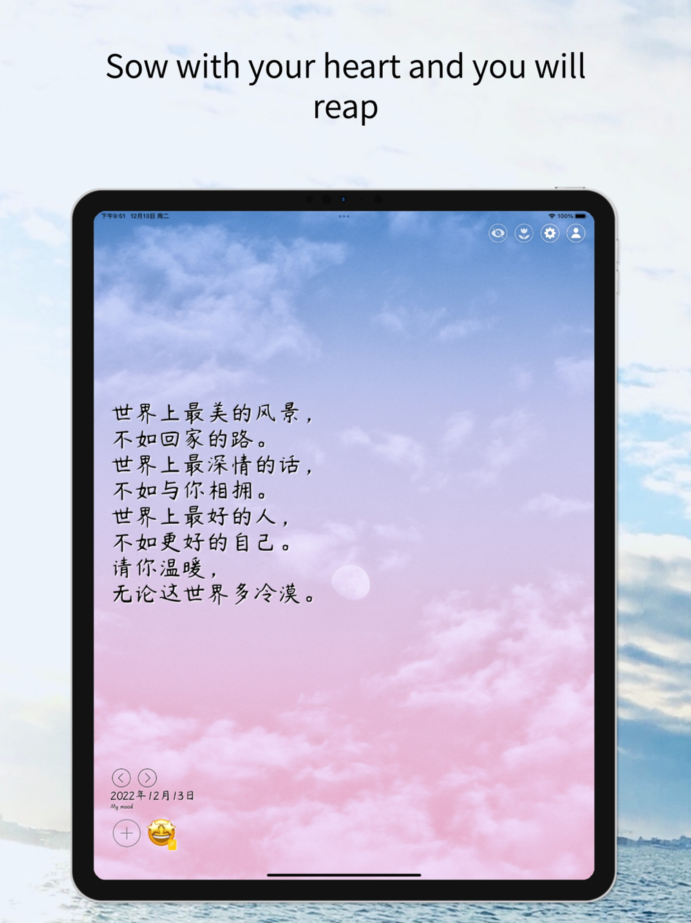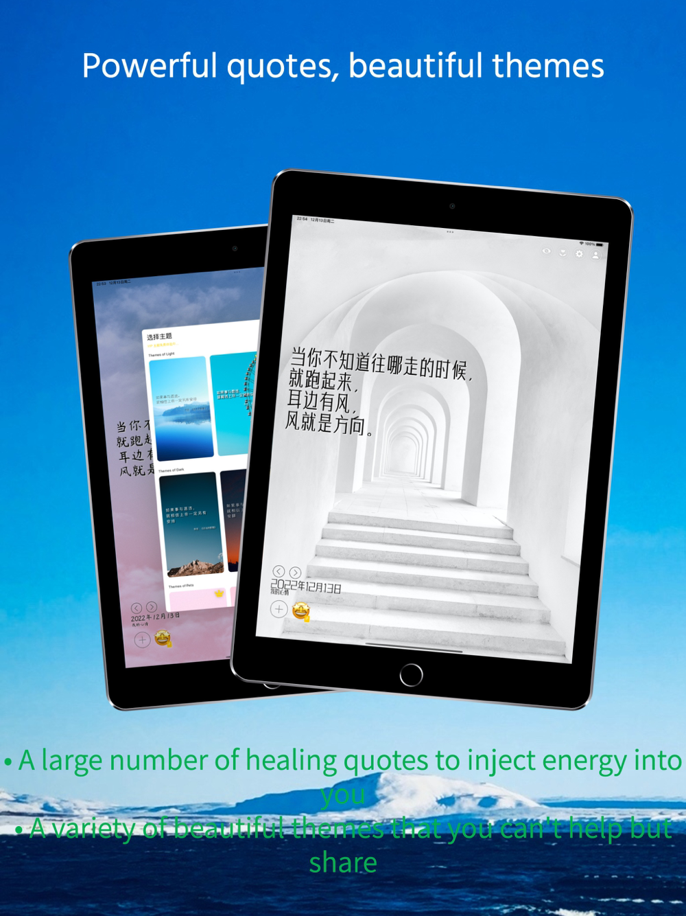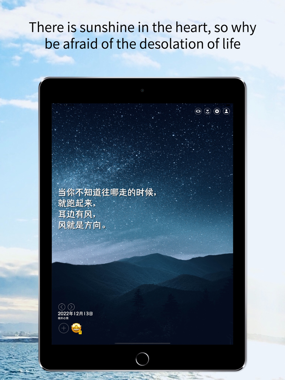 This is a daily quotation and mood logging tool. With beautiful pictures paired with extraordinary quotations, it can unintentionally heal your inner trauma or inject energy into you. You can also use an eMoji expression to represent and record your mood at the moment. Afterwards, you can track and review your mood changes over a period of time according to the mood index curve, adjust your emotions, and make yourself free from negative emotions every day. Let yourself have a full-energy life and work every day.