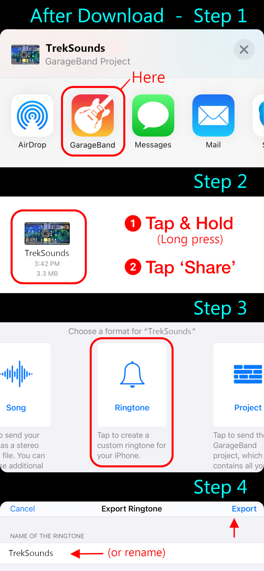 - Export the sounds to be set with GarageBand and found in your system