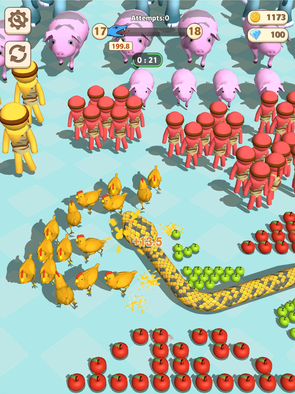Introducing Worm Crusher, the ultimate 3D snake game! Control your snake to devour as many objects as possible within the time limit, to increase your length and size, and earn higher rewards in subsequent rounds.
