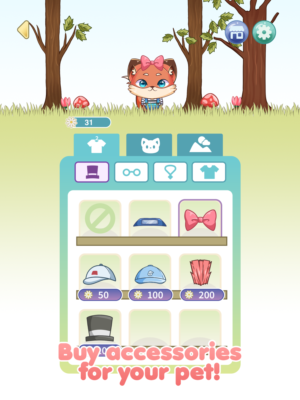 When you score combos, daisies appear on the board -- collect them by clearing lines. Once you have enough daisies, check out the in-game accessory shop and buy cool items to decorate your pet and your forest home!
