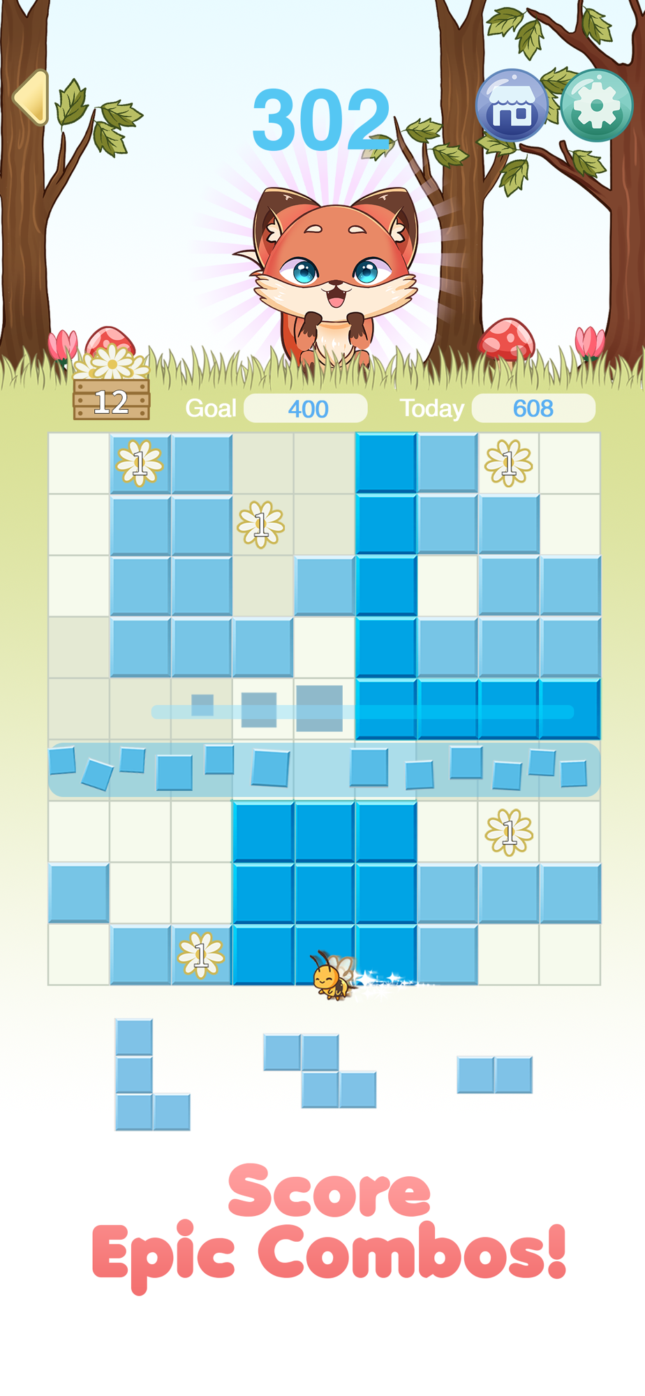 Will you play it safe and keep your board clean, or maximize your score by combining multiple lines at once? The more COMBOs you string together, the higher your score...and daisies that you'll earn!