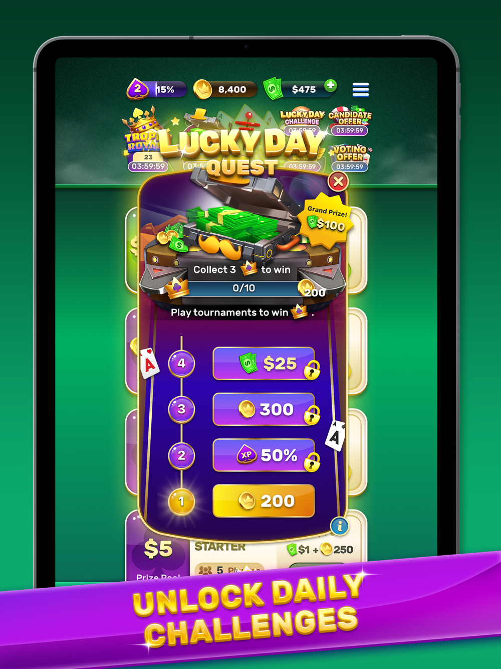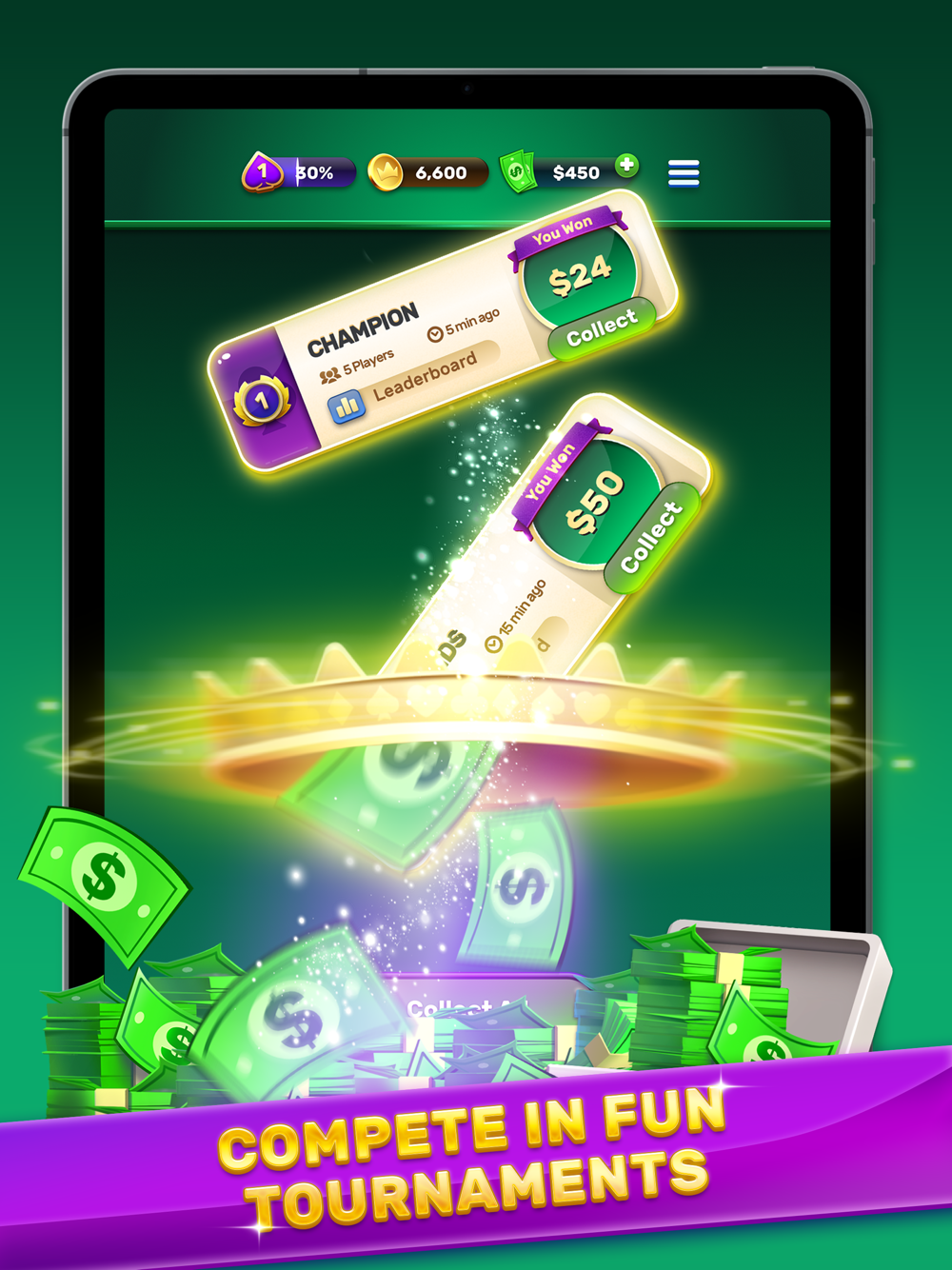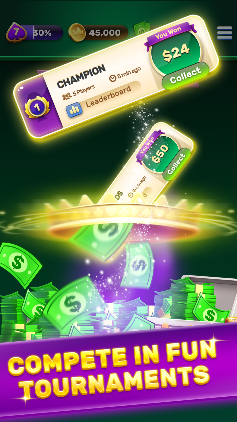 Solitaire Royale™ is the ultimate solitaire game where fast, fair, and fun gameplay meets real cash prizes. Download and play the game for FREE now! Test your solitaire skills in tournaments 24/7 for endless cash prizes. Play and win big with our immersive gameplay and daily new challenges.