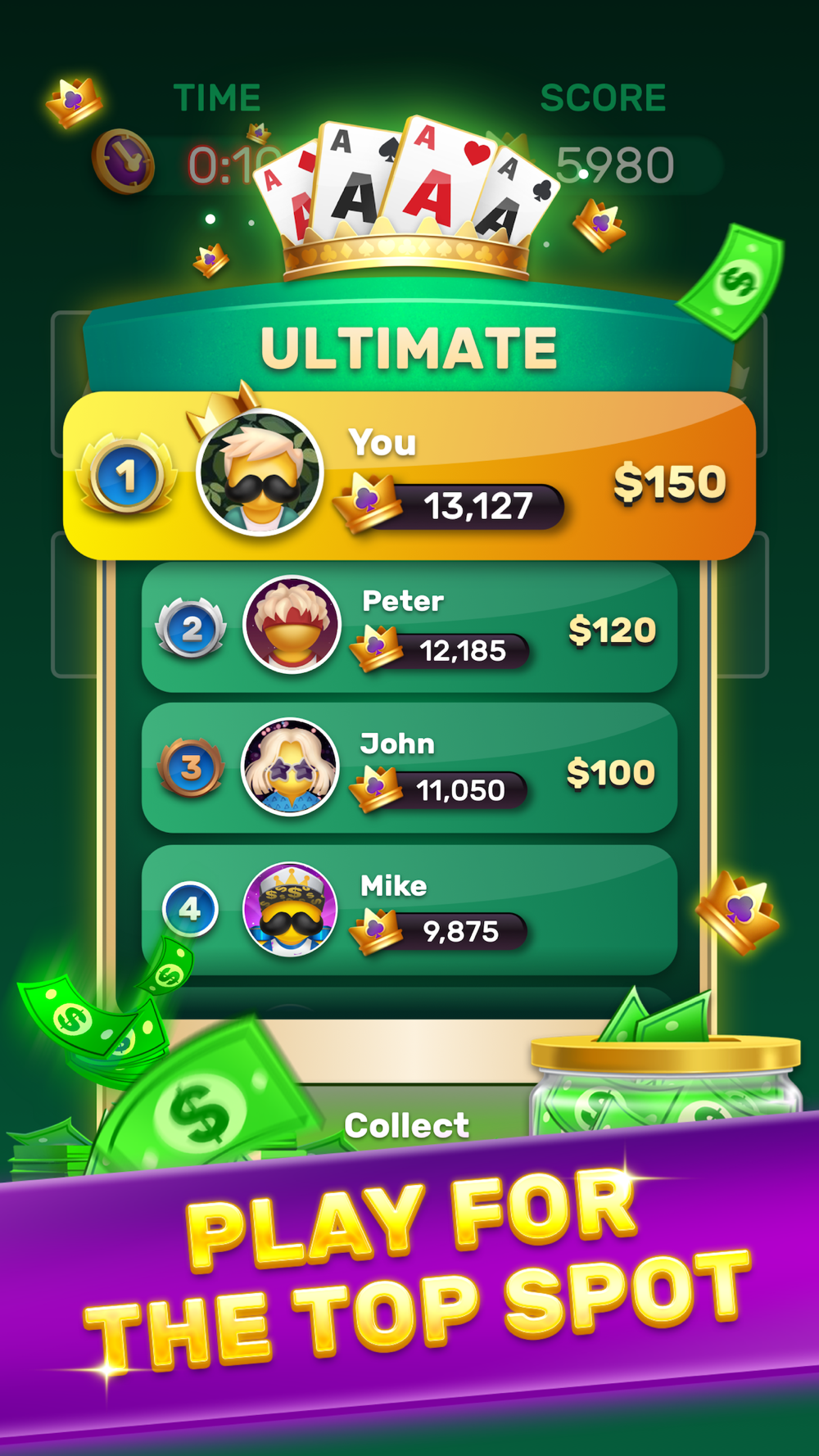 Top players win cash and prizes instantly! The faster you clear the board, or get as close as possible, the higher your rank will be on the Trophy Royale leaderboard, and the bigger the prize!