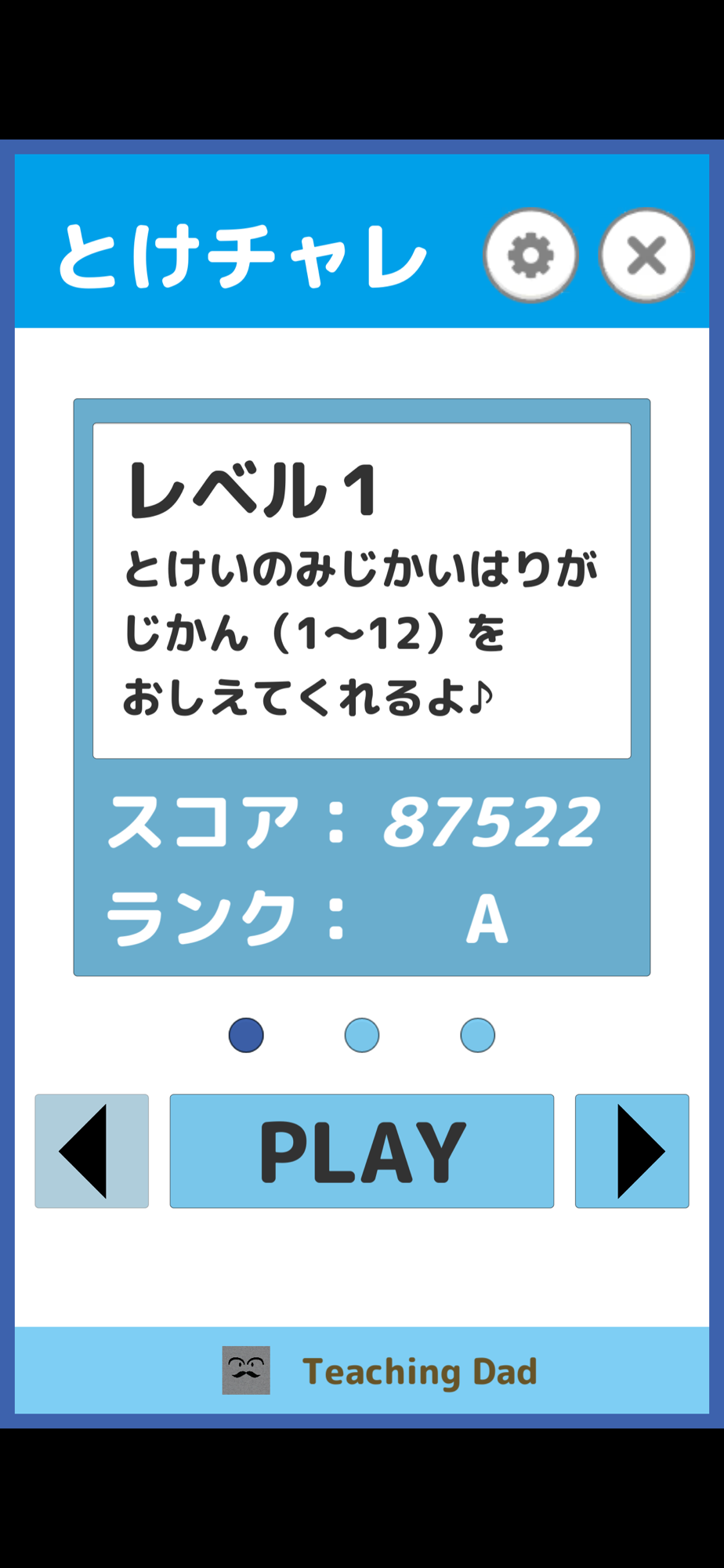 この教育アプリは時計を学習するためのアプリです。短針(1〜12)のみの簡単な問題から短針と長針(0〜59)を組み合わせた問題まで、自分のレベルに合わせて学習することができます。 正解率やタイム、スコア、ランクが表示されることで、学習意欲を促します。時計を覚えたい方、是非このアプリを試してみてください!