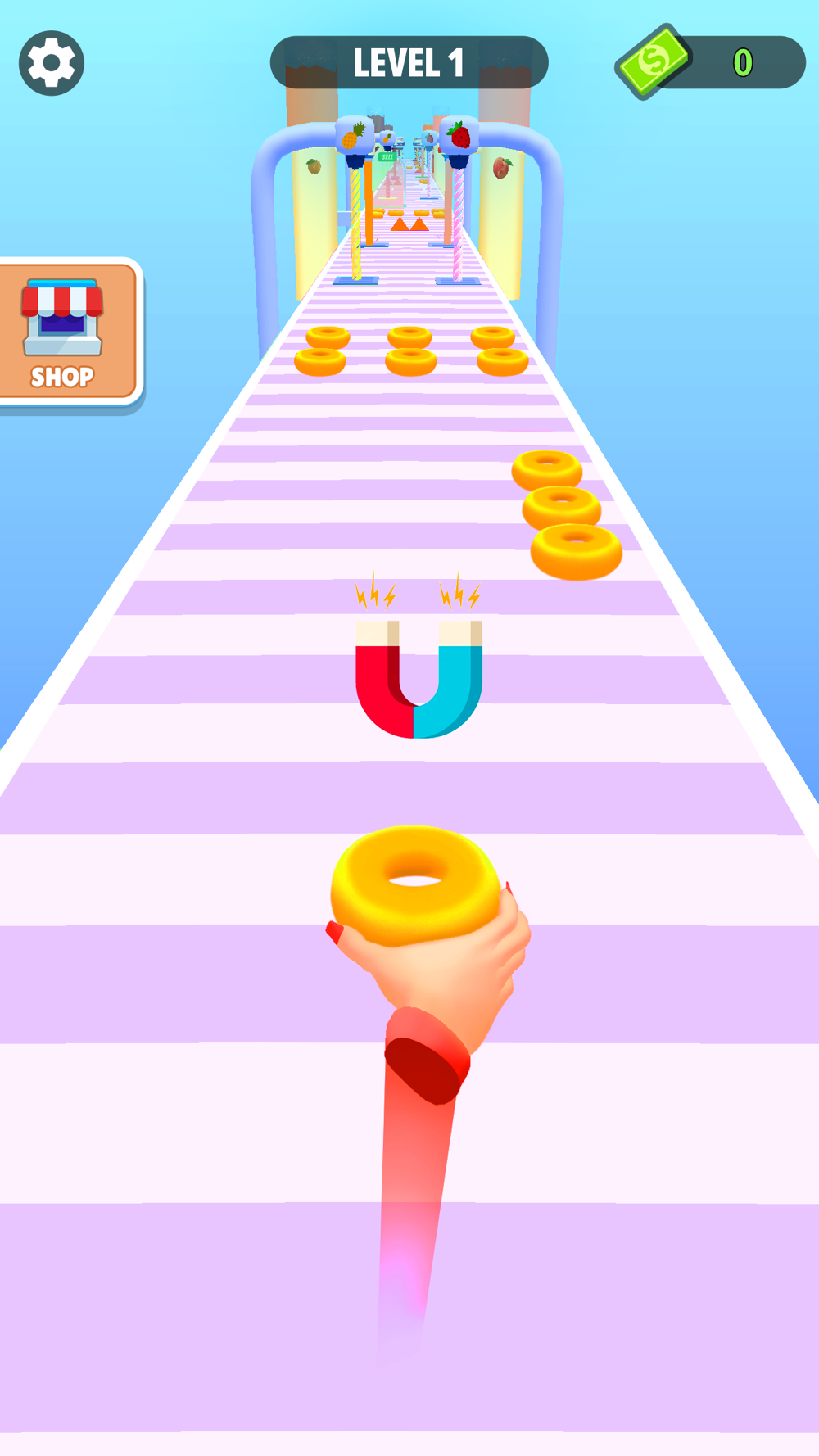 Reach the end and complete the donut run game.