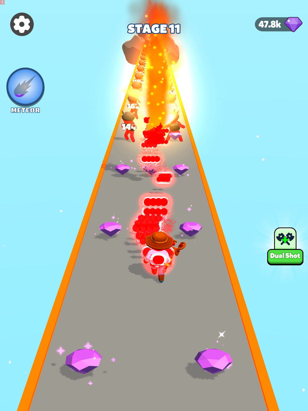 Build your hero powers, choose weapon, choose skills and destroy enemies.