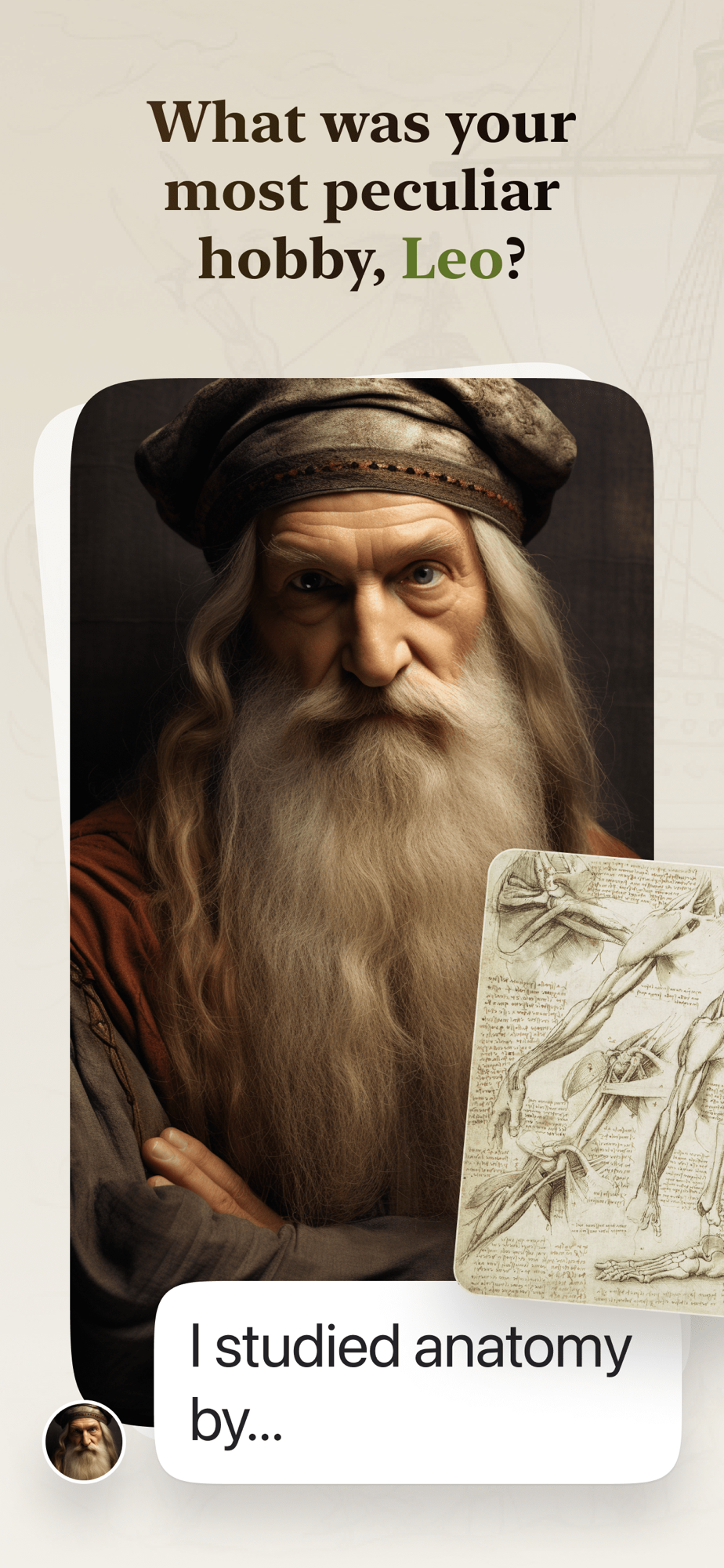Unravel the mysteries of history through immersive conversations with legendary figures from various fields of science, art, and culture. Hermes offers a unique and engaging way to delve into the past, learn from the wisdom of those who shaped our world, and gain a deeper understanding of historical events and eras.