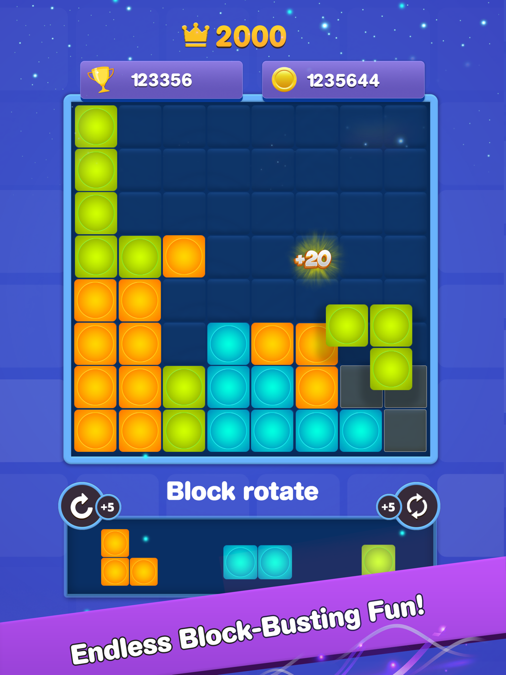 Blockbusting tetris game jigsaw puzzle starts off easy but gets progressively challenging as you clear blast jigsaw blocks. Players must carefully arrange jewel gridblock around the board until they clear blast spaces. This free block puzzle tetris game is highly enjoyable especially when you clear blast the highest score.