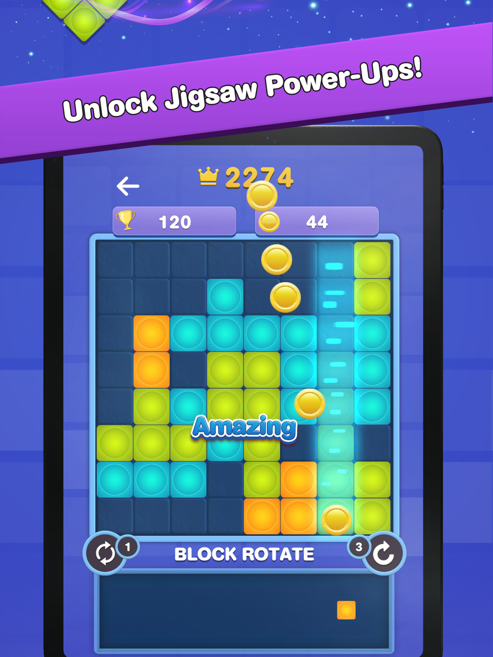 Amazingly, If you're down to the last cube block of jigsaw puzzles and it won't fit, simply watch a quick ad to earn 20 coins and change its position for a winning move.
