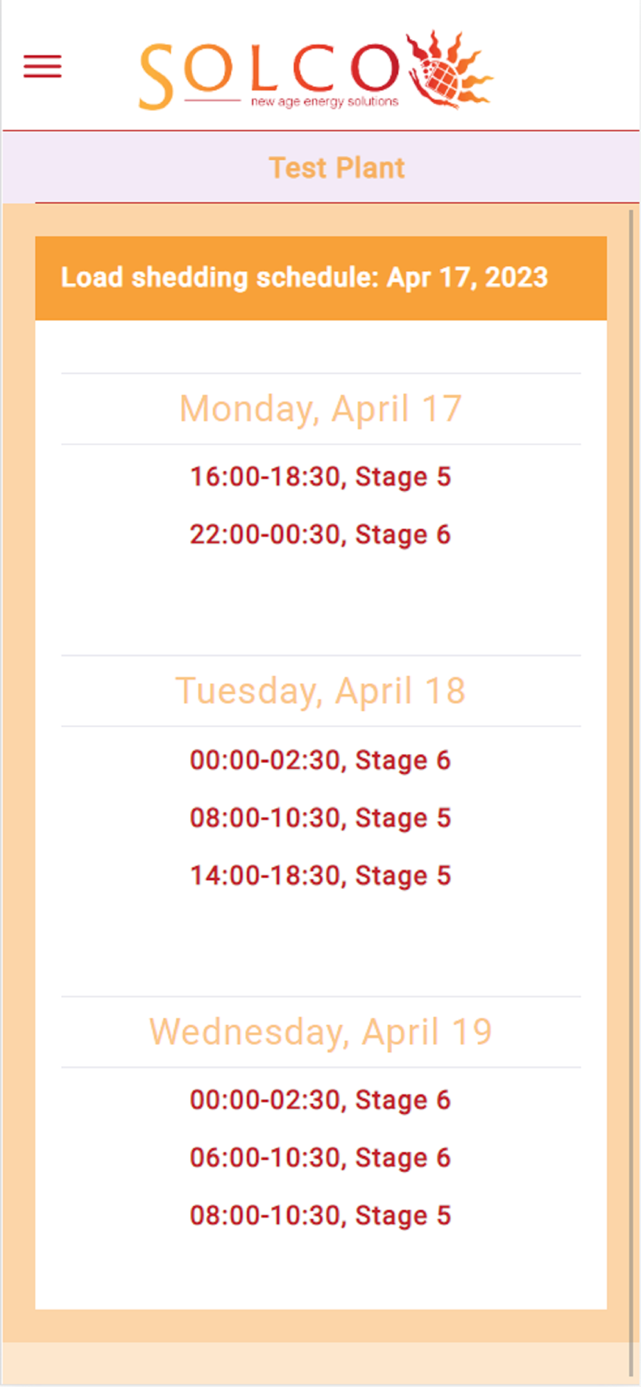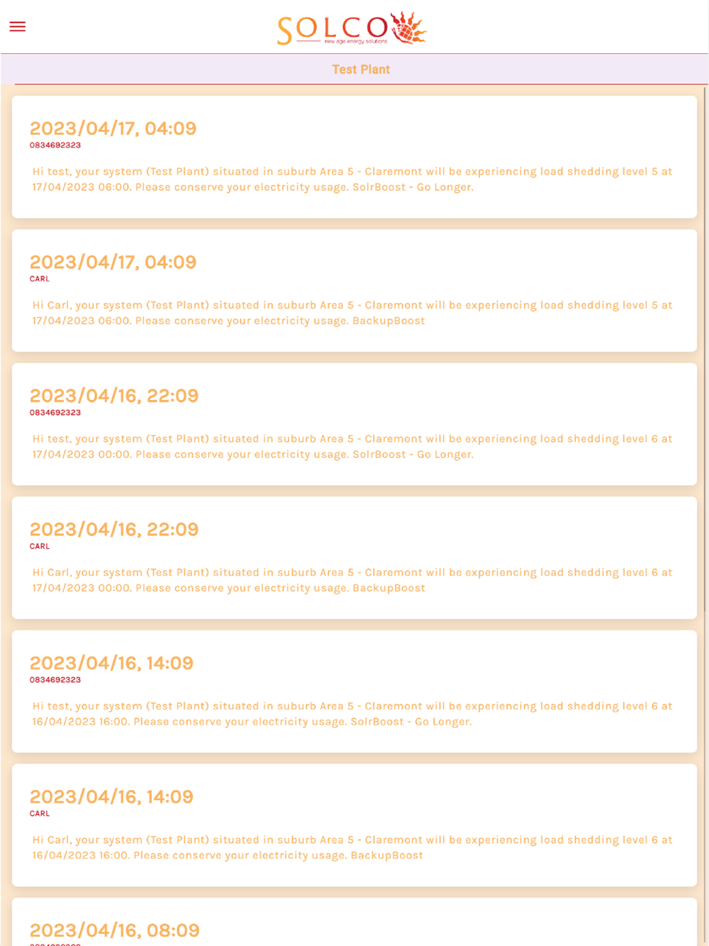 Mobile Application for Solco Solar customers. Customers can register for push notifications, see their loadshedding schedules as well as historical messages sent to them.