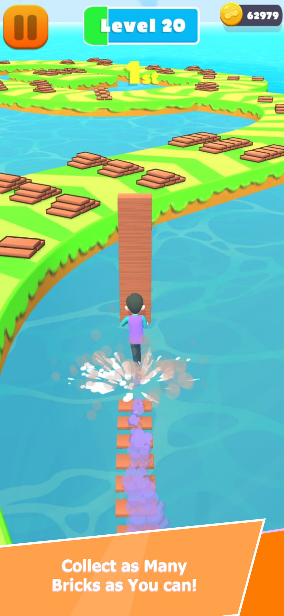 -Collect bricks to create the shortcuts, Intuitive Swipe Controls for Easy Play!
