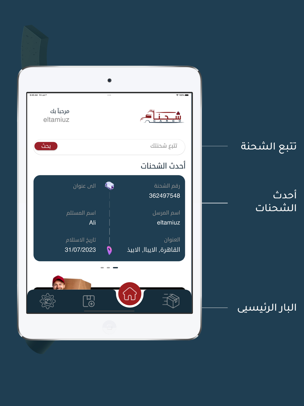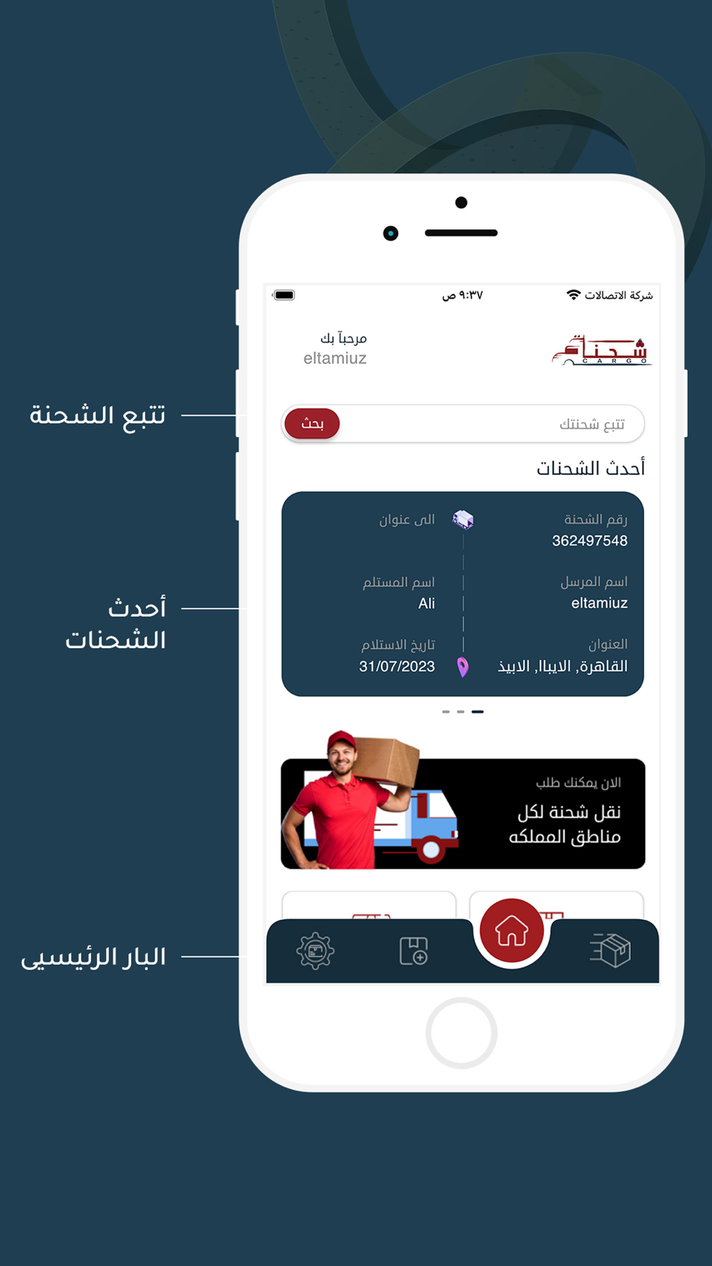 تطبيق شحنة يعتبر الشريك المثالي لأعمالك واحتياجات نقل البضائع الشخصية. احصل عليه الآن واستمتع بتجربة فعالة وسهلة في إدارة شحناتك وتخليصها بكل يسر وسرعة.
