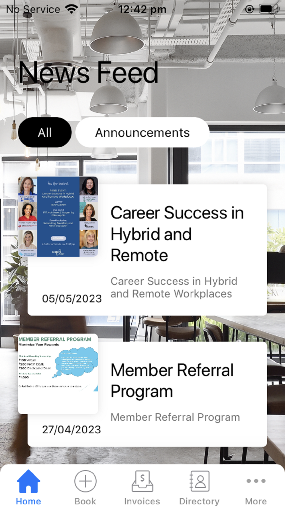 Our member app enables you to book our Meeting Rooms as well as being able to view and pay invoices, browse our community and keep up to date on news applicable to our members