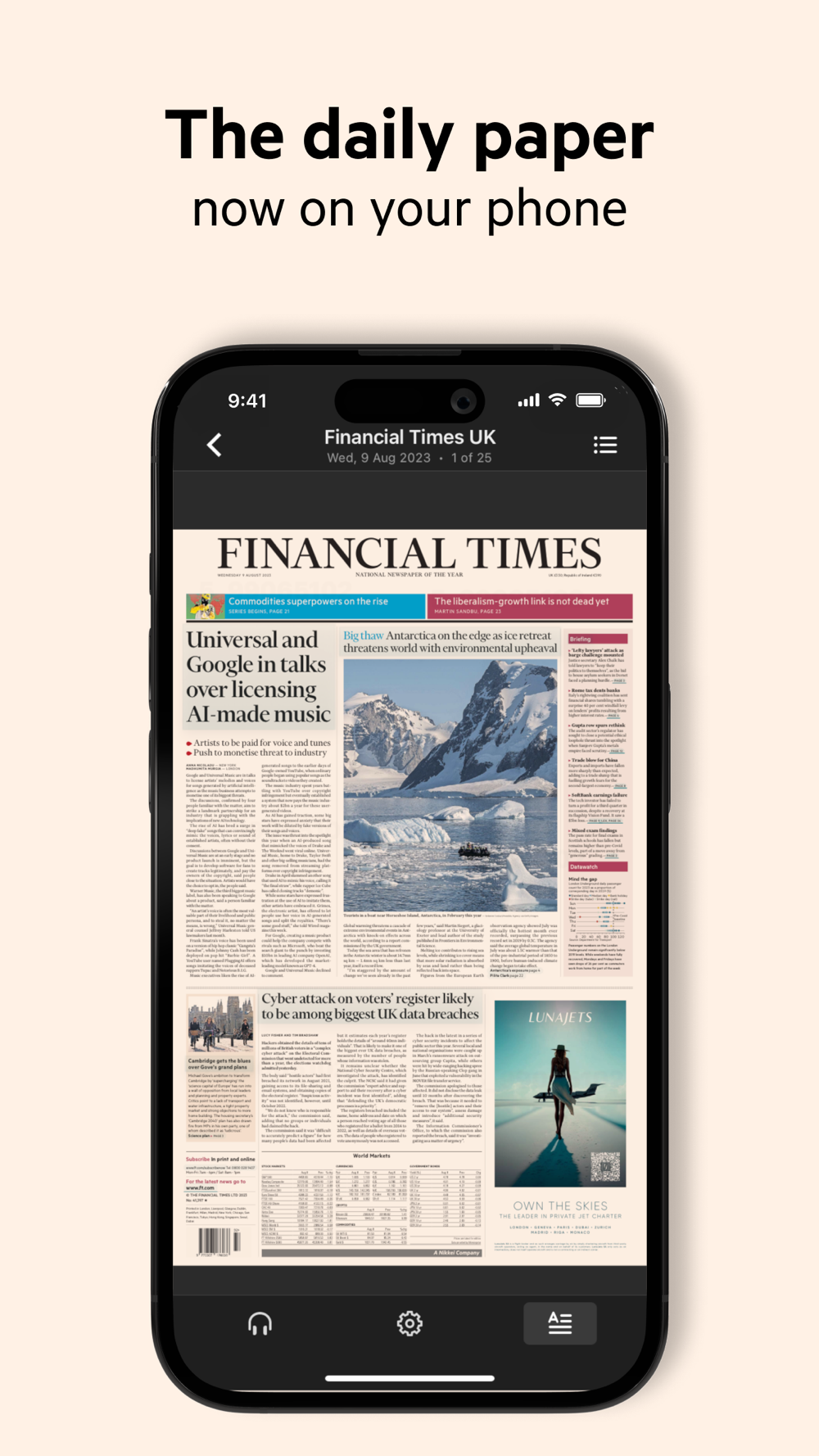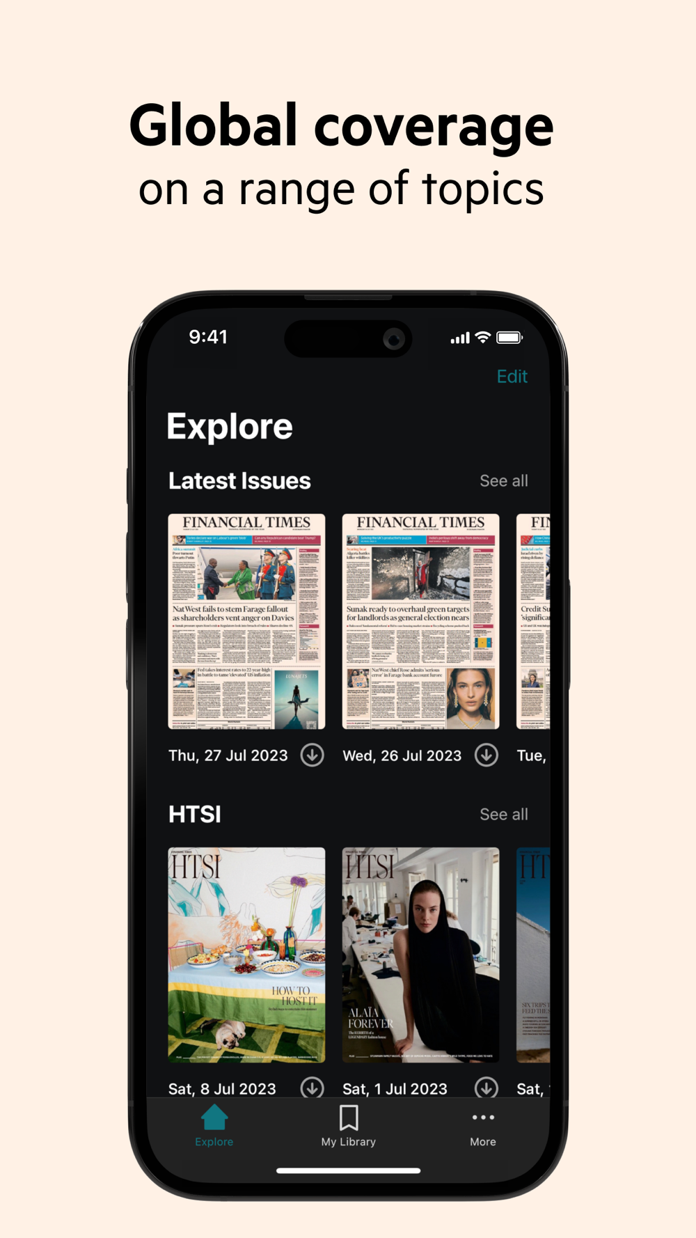 Enjoy the same news stories you get in the FT newspaper, covering world news, business, politics, technology, economics, markets, finance, climate, culture, and lifestyle. You can access all FT magazines and read previous editions of the newspaper dating back 10 years.