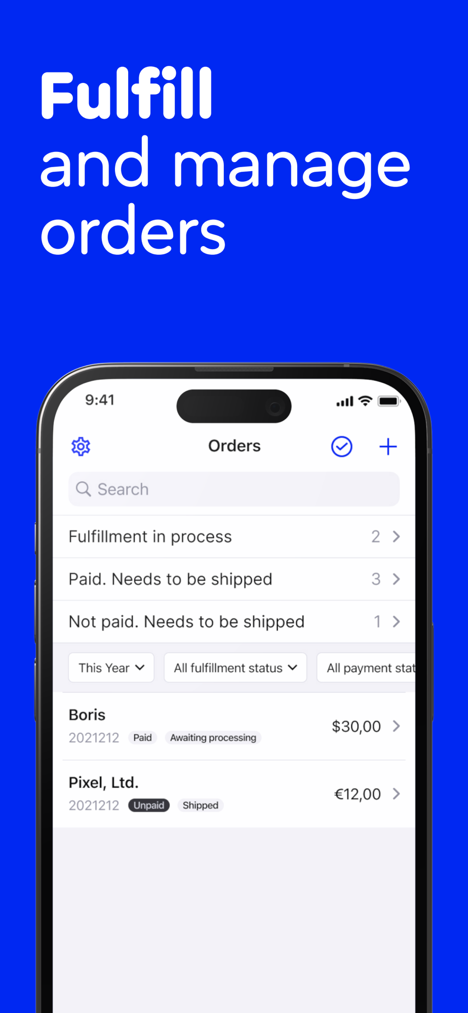 - Efficiently handle and update order statuses, while automatically keeping customers informed.
