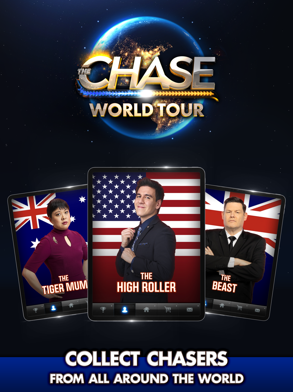 Do you love trivia, general knowledge and quizzes? Standing in the way between you and the chance to win big are The Chasers, some of the finest quiz brains in the world. Based on the hit TV show, The Chase - World Tour is a brand new game where you can show off your knowledge by taking on our famous Chasers to bring home your winnings and prove yourself a champion quizzer. The Chase is on!
