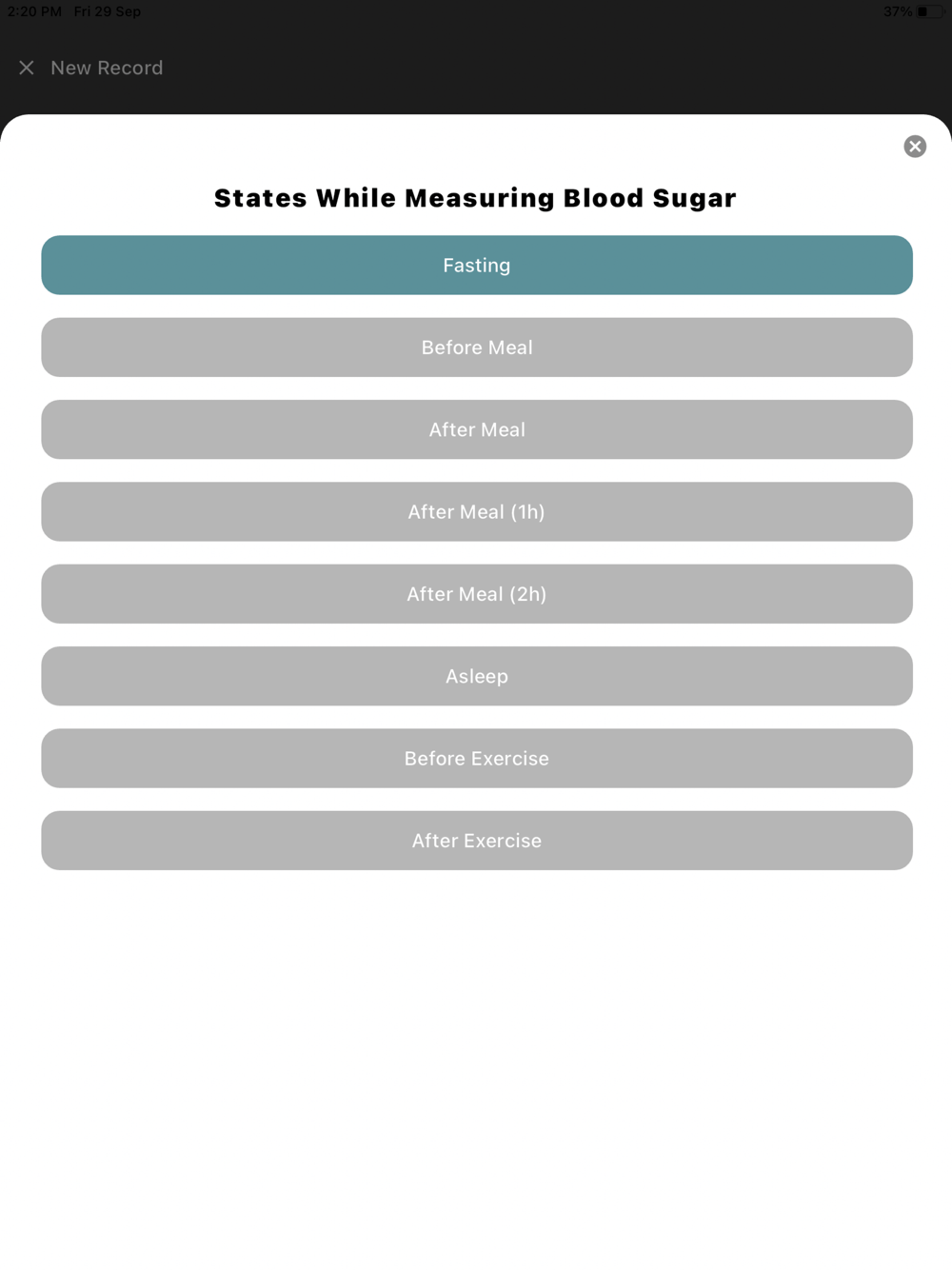 - Filter blood sugar readings by type of event (before a meal, after a meal, fasting, etc.)