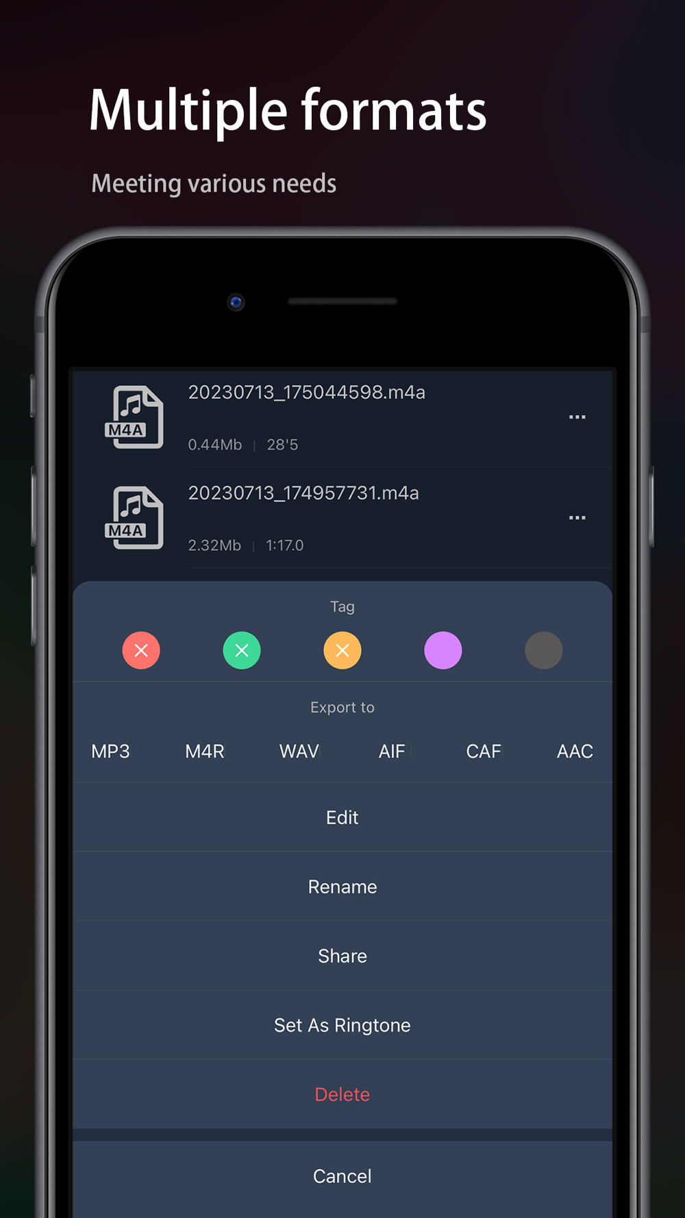 - 「Setting as ringtone」: Set the audio as the phone ringtone