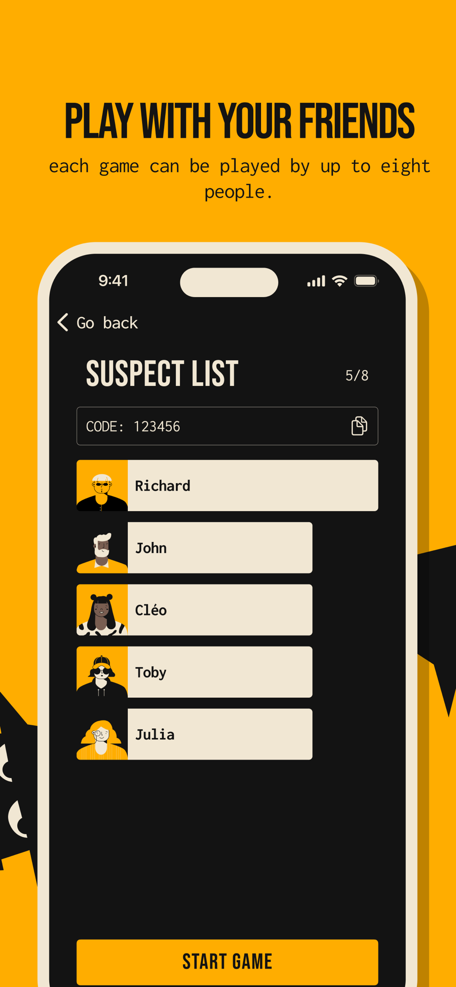 2) When the game starts, one person is randomly chosen to be the criminal, Mr. Hazy, and the remaining players will play as detectives.