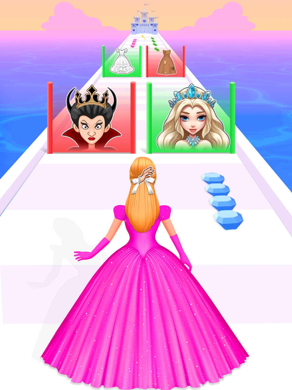 Enjoy a bridal wedding makeover with DIY makeup in princess fashion games. Make a princess race by wearing your favorite white and black dresses in oddly satisfying marriage games. Make a wedding dress-up run with a princess makeover and bride race in princess dress-up games for girls. Come out of simple stack runner games and make a makeover run race in wedding games.