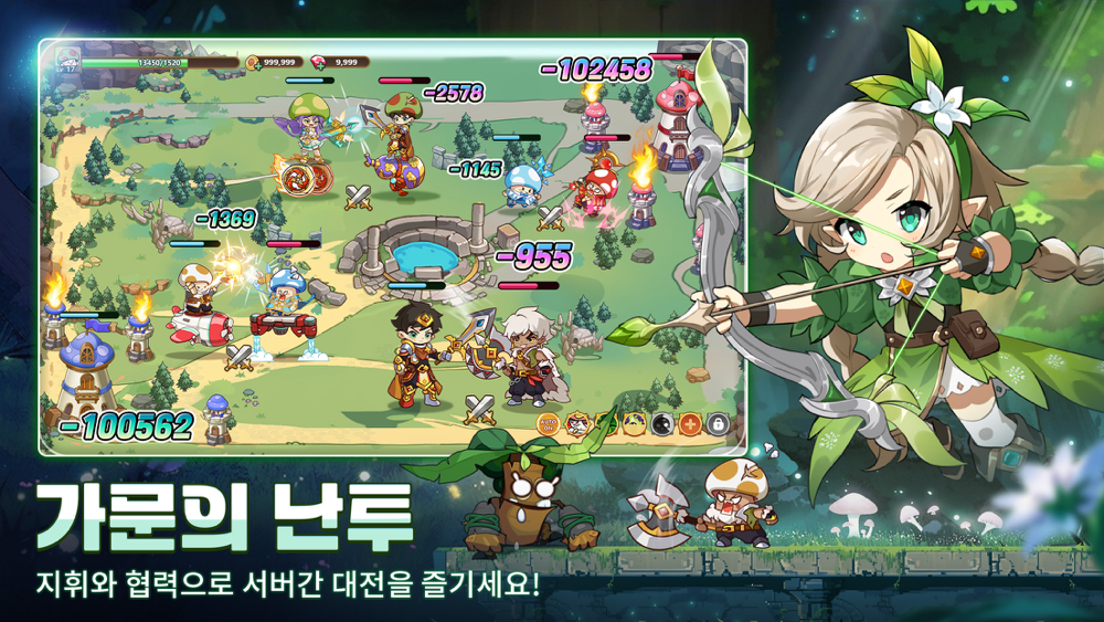 버섯처럼 뭉치고 함께 성장하라! 치열한 파티 대결! 통합서버 가족 난투!