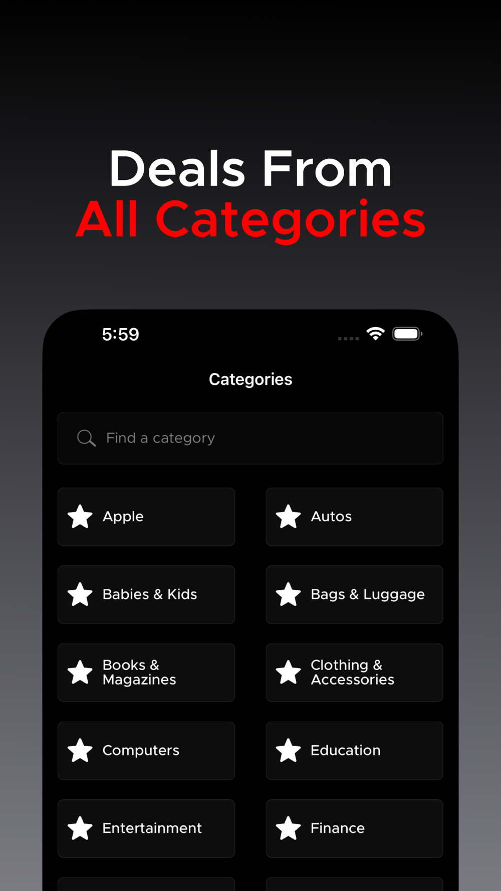 Favorites: Save your favorite deals and products for quick access. Never lose track of what you have your eye on.