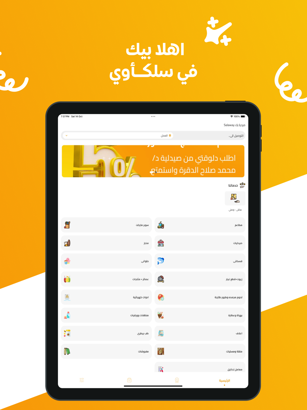 سلكاوي بيوصل اي حاجه لحد باب بيتك . تصفح التطبيق واختار اللى محتاجه من القوائم المتاحة او اكتب اللى محتاجه مباشر وفى دقايق هيكون عندك