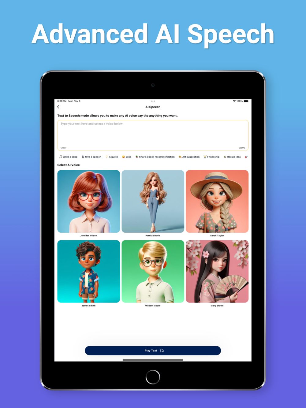 Vocal Cloning Brilliance: Clone any voice with our sophisticated AI technology and make it sing, speak, or shout your text.