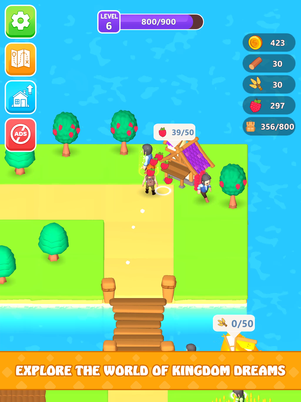 Engage in the core gameplay loop that drives your progress: explore and uncover new territories, amass resources, and strategically construct kingdom buildings. The more you build, the greater your experience grows, allowing you to upgrade your structures up to six levels, reaping richer rewards with each enhancement.