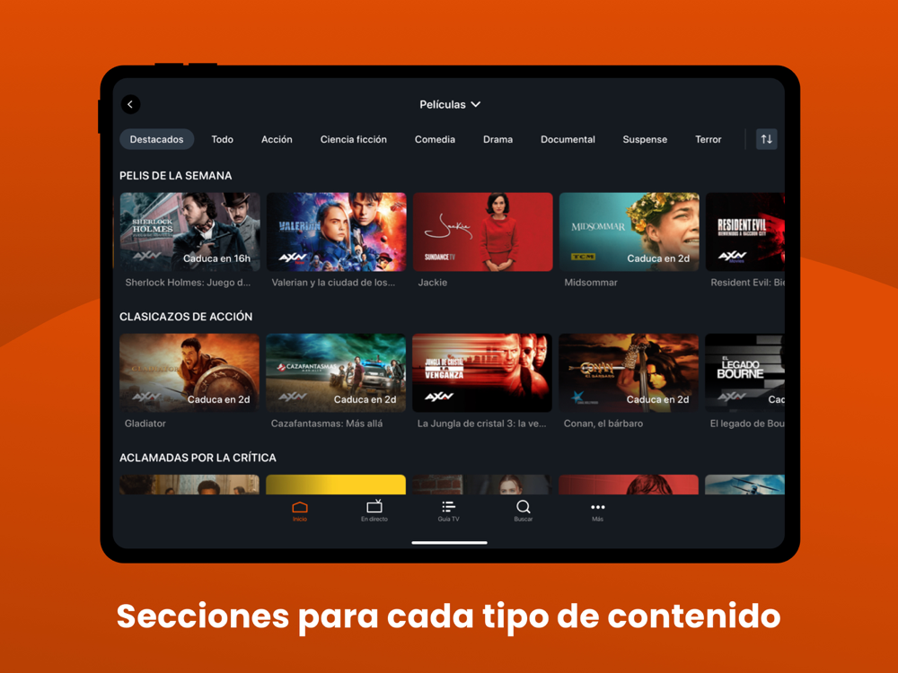 - Controla el directo. Olvídate de horarios porque puedes reproducir un contenido desde el inicio, pararlo y avanzar o retroceder cuando tú quieras.