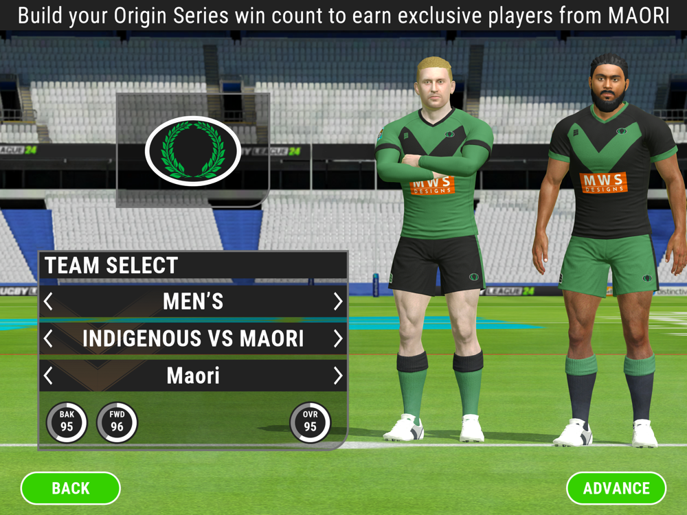 * Expanded Origin Series mode features new tournaments such as War of the Roses and Indigenous vs Maori, as well as the State Series.