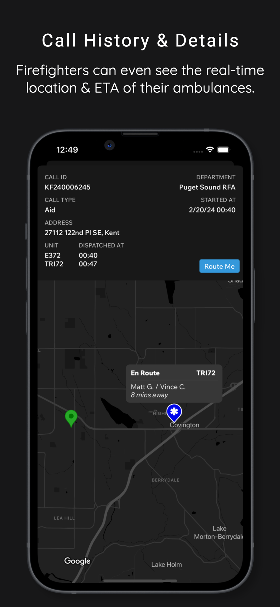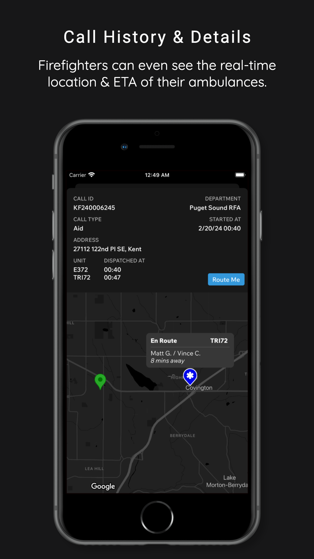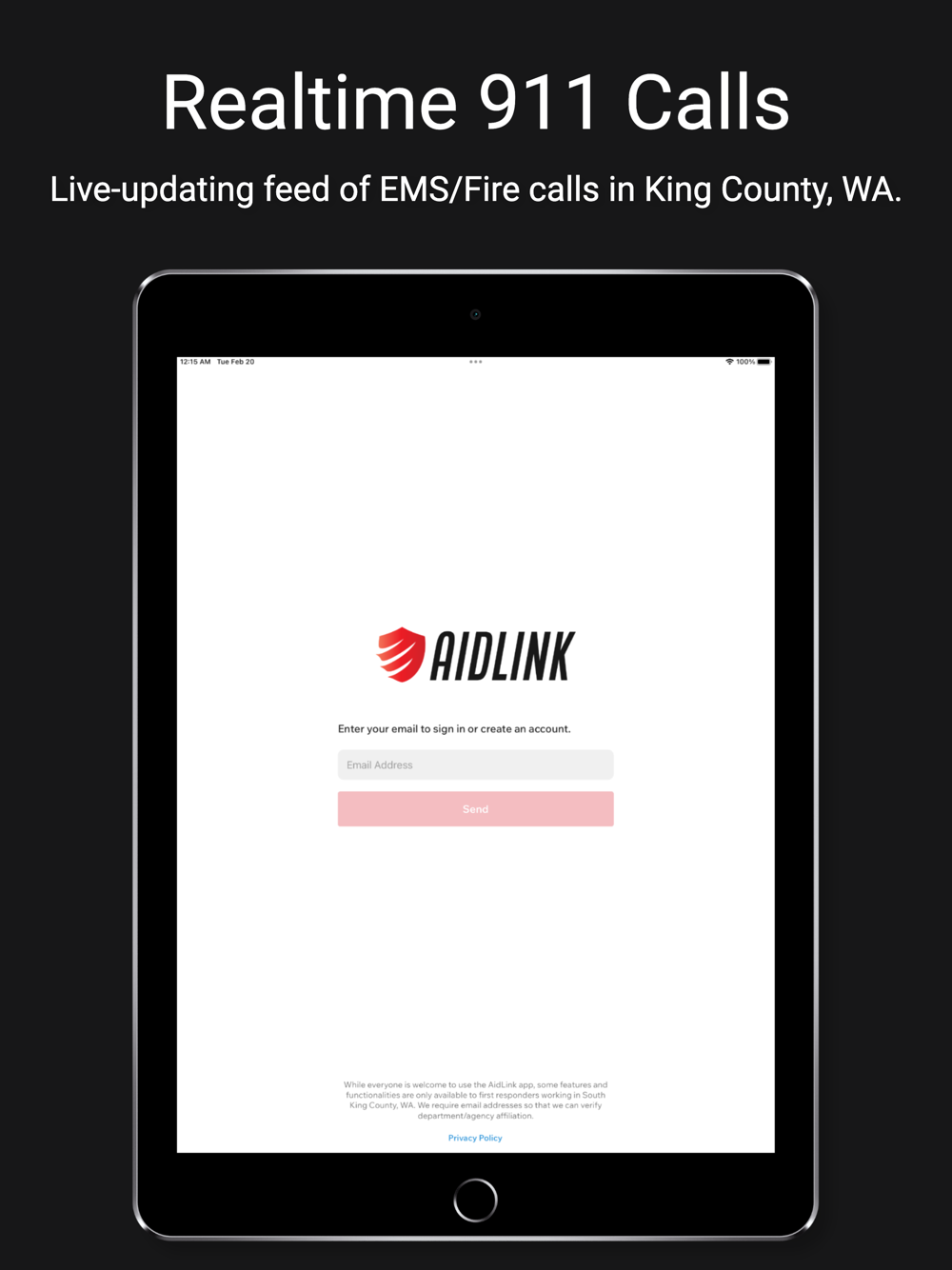 AidLink offers users a realtime feed of EMS/Fire calls in South King County, WA. For users with an agency-affiliated email address, they'll also be able to see the realtime locations and ETAs of their dispatched ambulances. AidLink currently only tracks departments dispatched by Valley Communications Center (Valley Com), but more departments and PSAPs can be added in the future.
