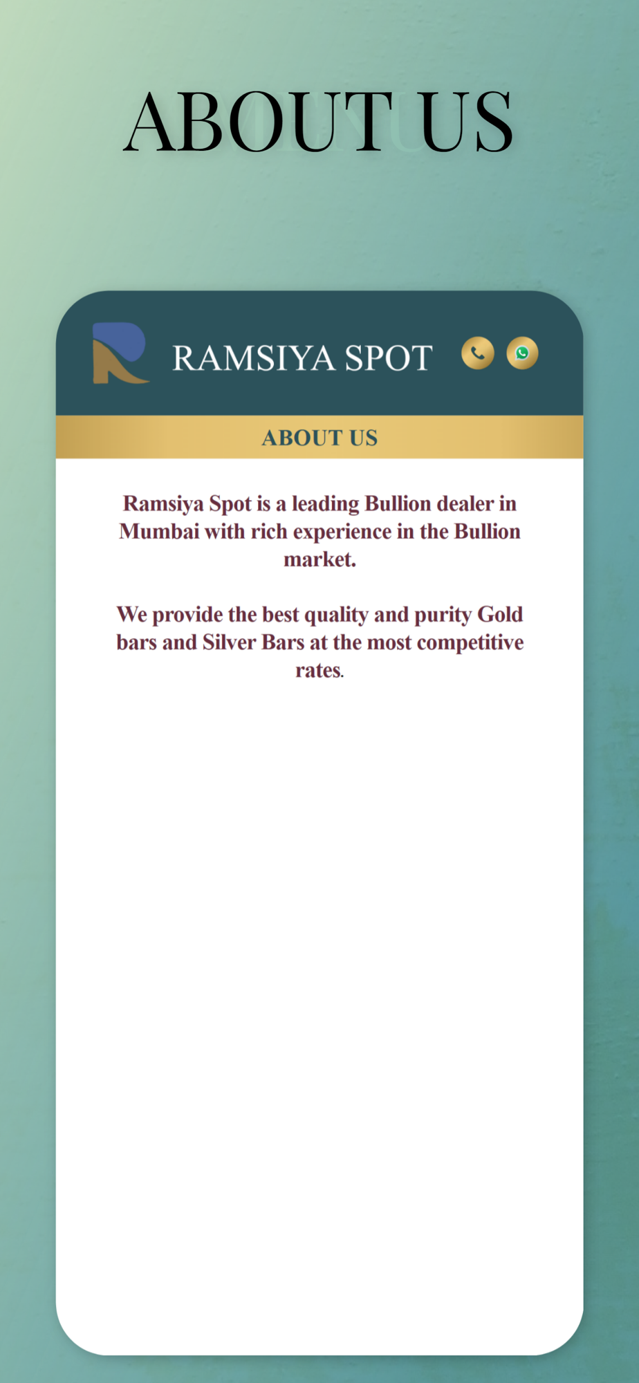 RAMSIYA SPOT stands out as a premier Bullion merchant in Mumbai, recognized for its deep understanding of the Bullion industry.