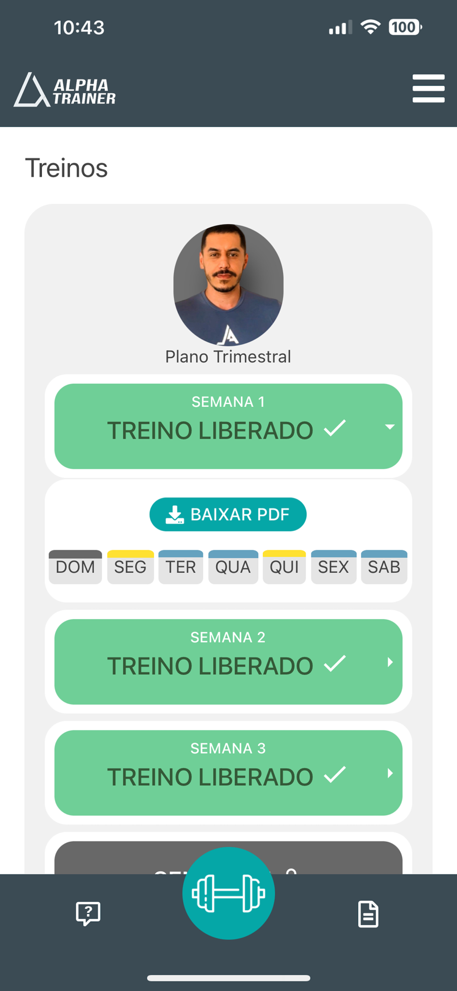 O Alpha trainer o aplicativo feito para você profissional que quer ser referência na entrega de qualidade dos seus treinos, o aplicativo tem como objetivo ser de fácil manuseio para seu aluno acessar os treinos de forma simples e objetiva.