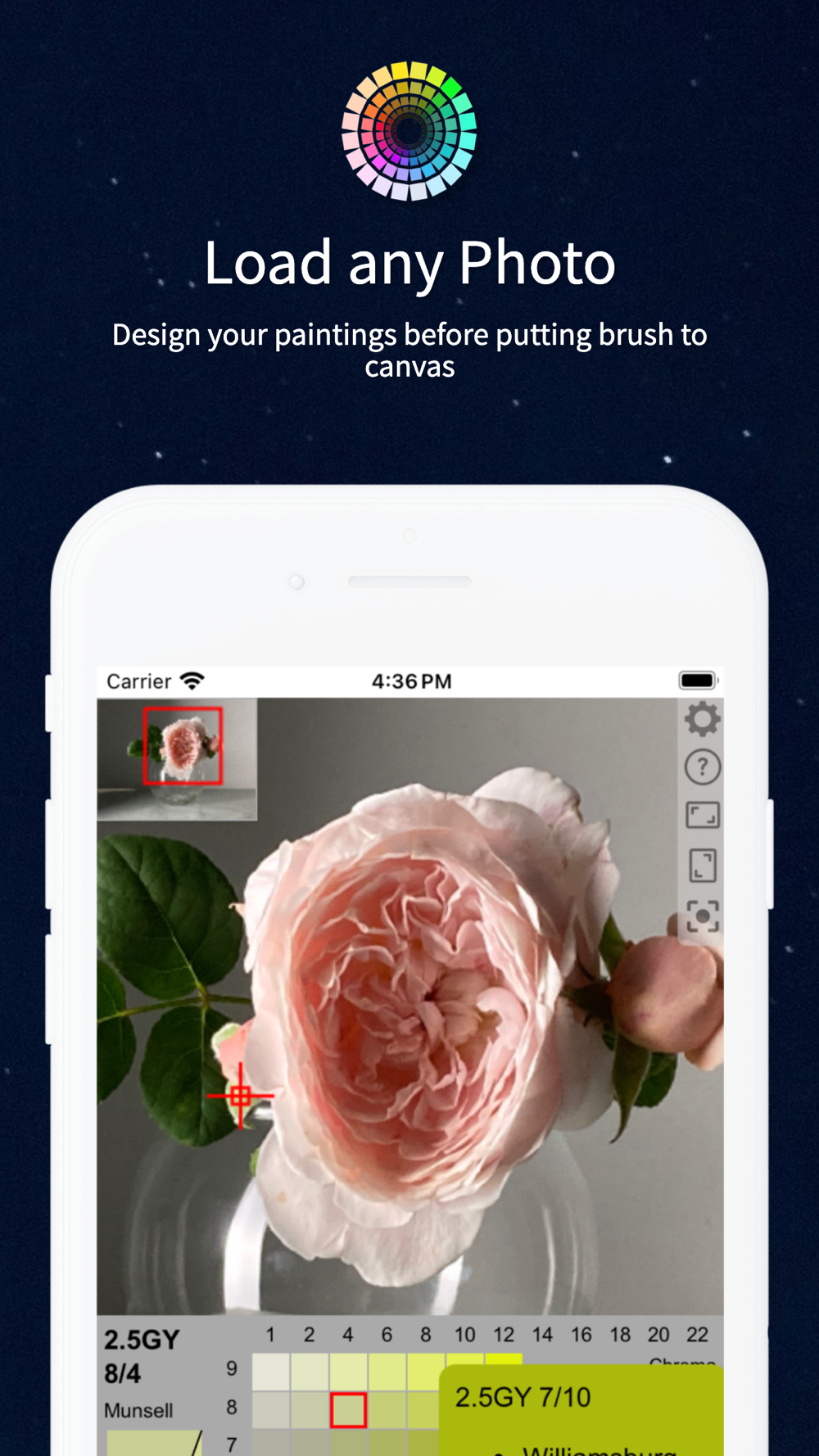 With ChromaMagic you can load up any photo or reference and see at a glance what any color is. And the colors are described in a way that is most natural for artists. What is the hue (red, yellow, green etc)? Yes! And what is the value (very important)? Yes! And what is the chroma (how gray or saturated it is)? Yes!!!