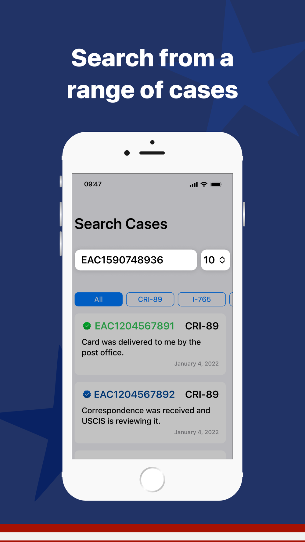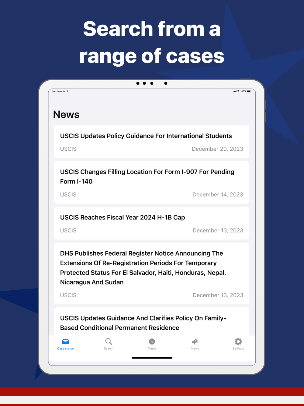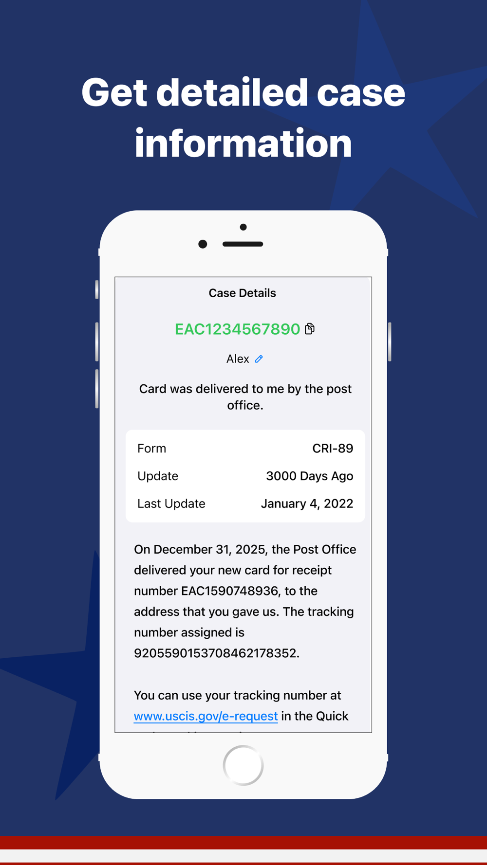 Important Note: This app is not affiliated with USCIS, it simply retrieves and displays information from their official website (https://egov.uscis.gov/casestatus/landing.do and https://ceac.state.gov/ceac/) for your convenience.