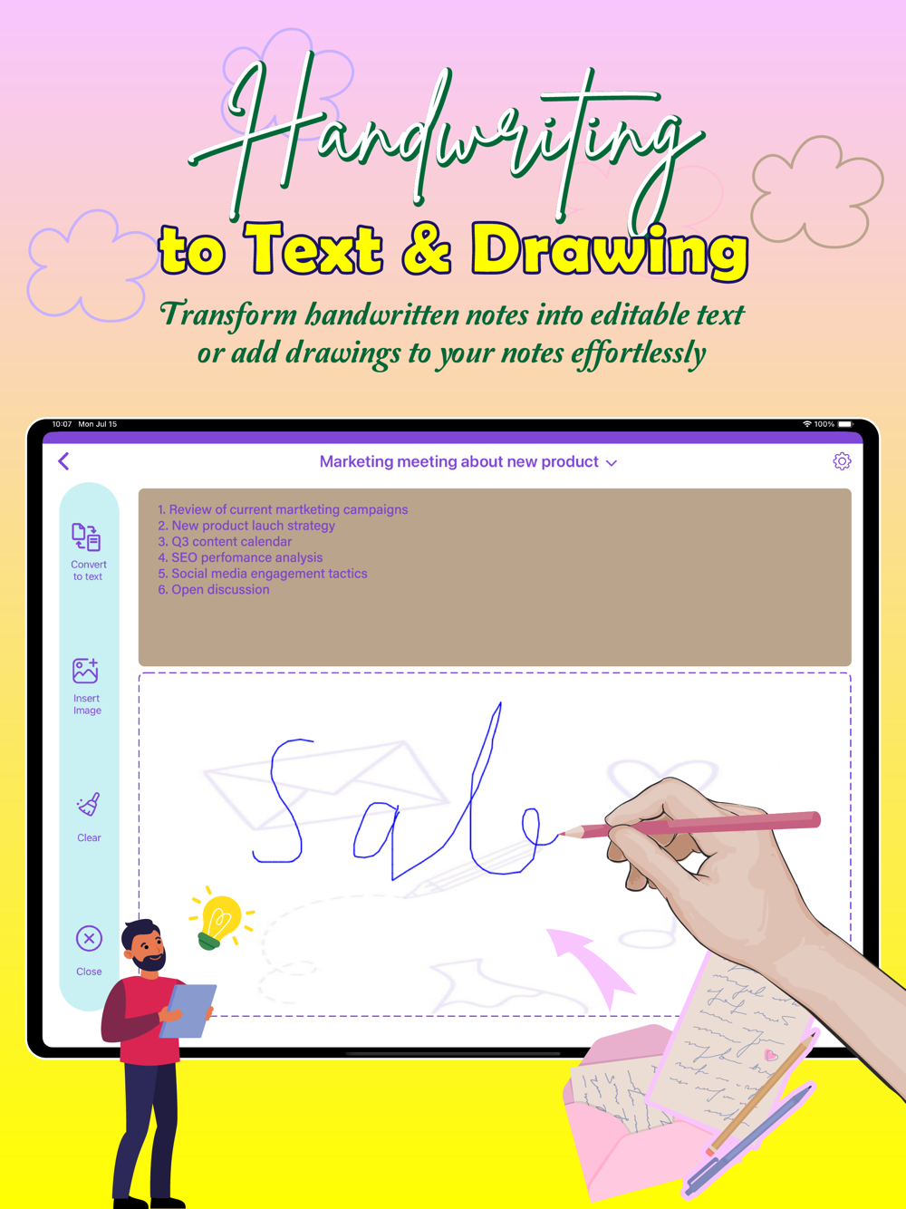 Handwriting to Text – Convert handwritten class notes into typed text for easy studying.