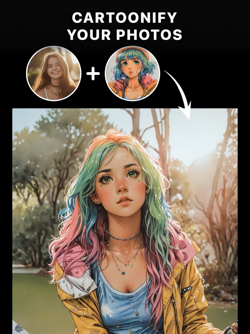 Turn your selfies into stunning cartoons! Instantly transform your portraits into cartoons or even animals. Use different style filters, surprise friends with unique cartoon portraits