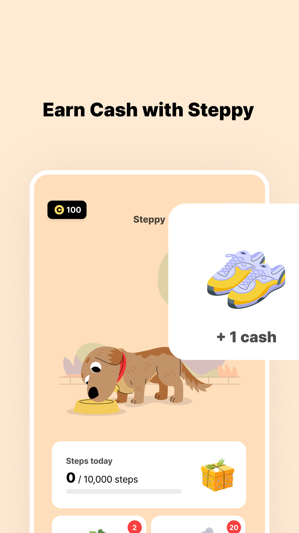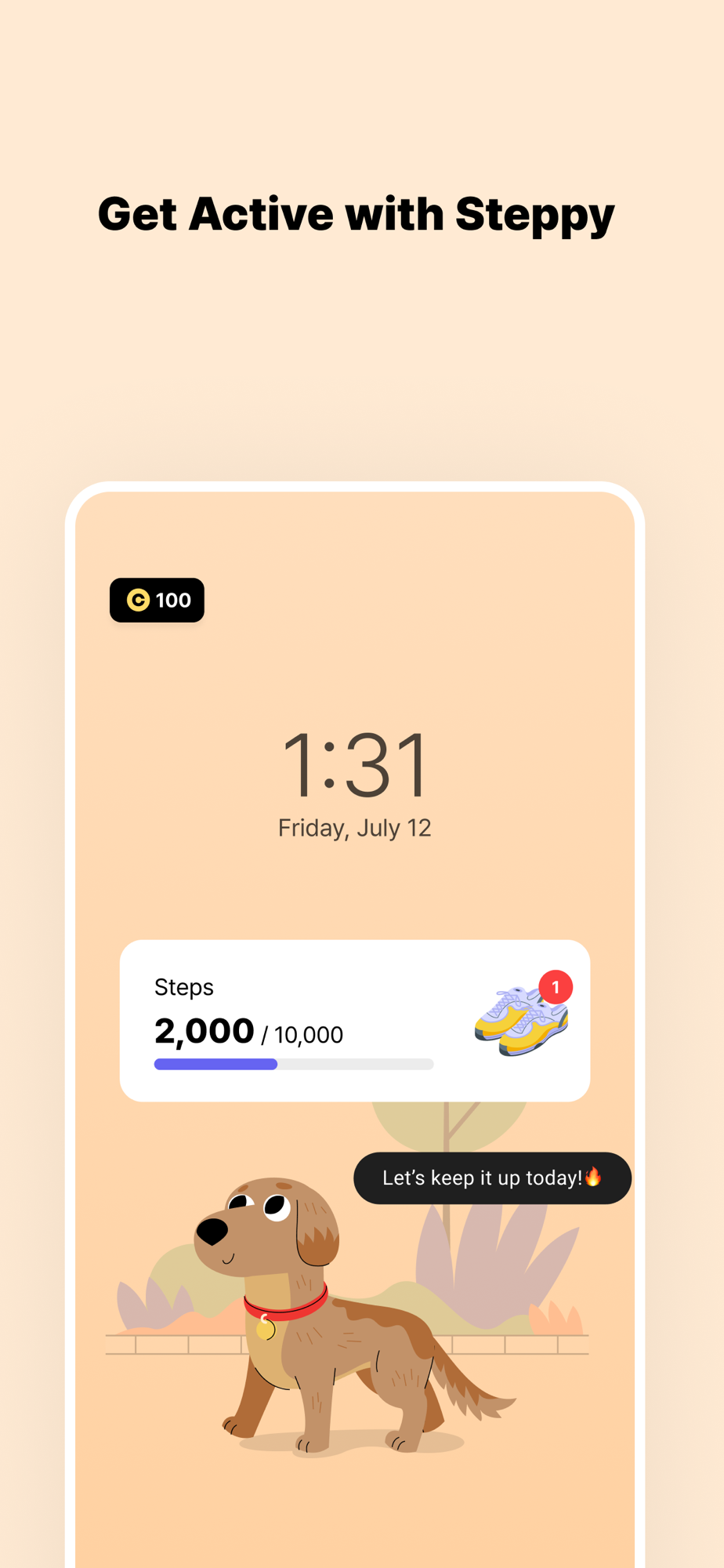 Steppy is your virtual puppy who keeps you active. Walk with Steppy to boost your health and get rewards!
