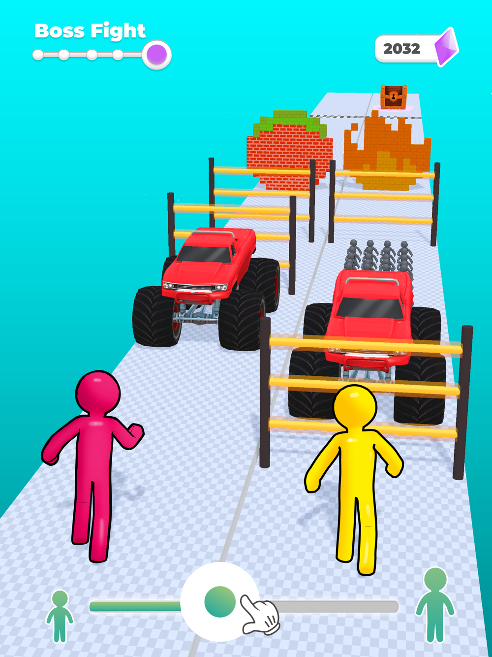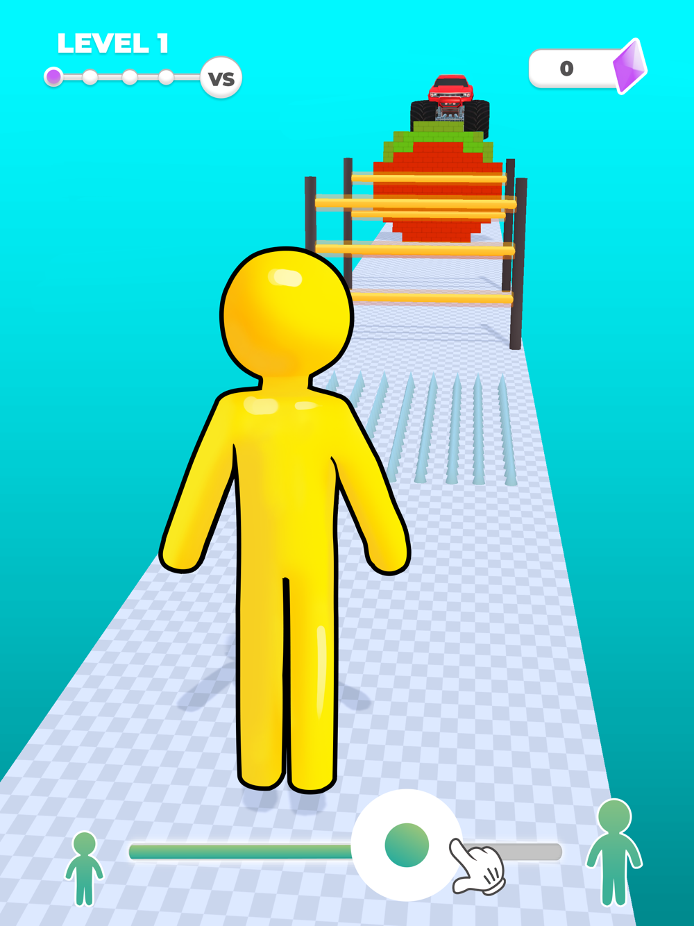 In the Size Up Man, it is all about changing your character's size. Your goal is to get through each stage, but there are lots of hurdles in your way like cars, fences, tiny bridges, and stacks of blocks. The Tall Big Man Run keeps things interesting by introducing new challenges in each stage. So, get ready for a man running game where resizing is the key to success!
